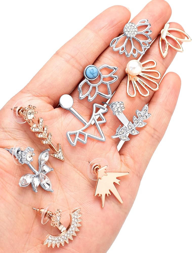 أنماط وفيرة: 10 أزواج من مجموعة واحدة متعددة الألوان، زهرة اللوتس المجوفة، زركونيا مكعبة لامعة، حلق أوراق الشجر، إلخ، مليئة بالتصميم الشخصي، مجموعة متنوعة من خيارات التصفيف، تطابق مثالي مع ملابسك الكاجوال اليومية وأزيائك.