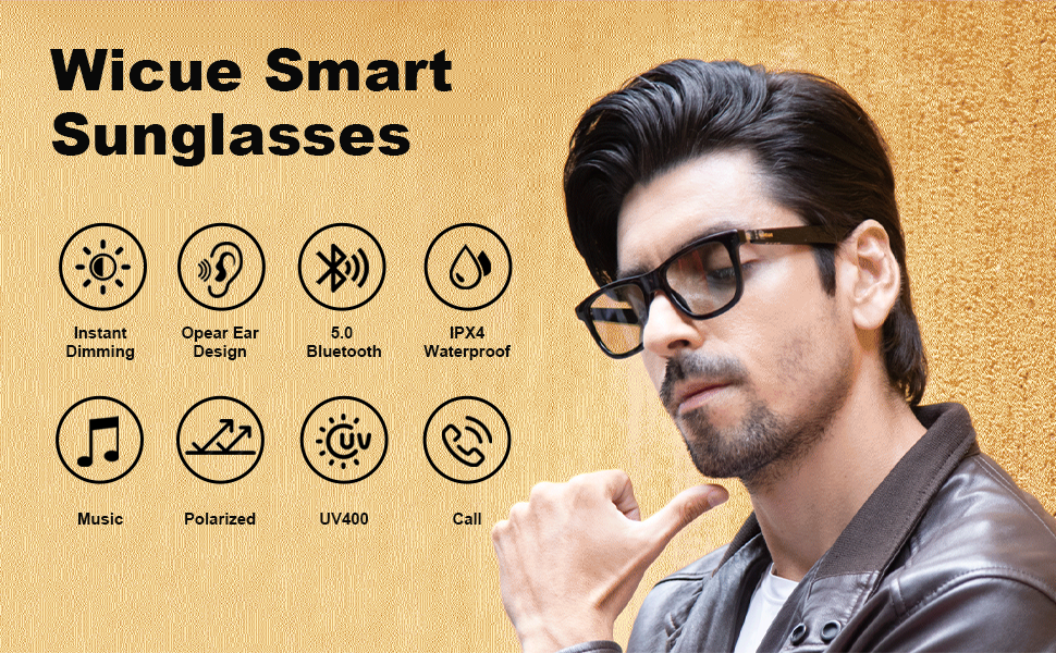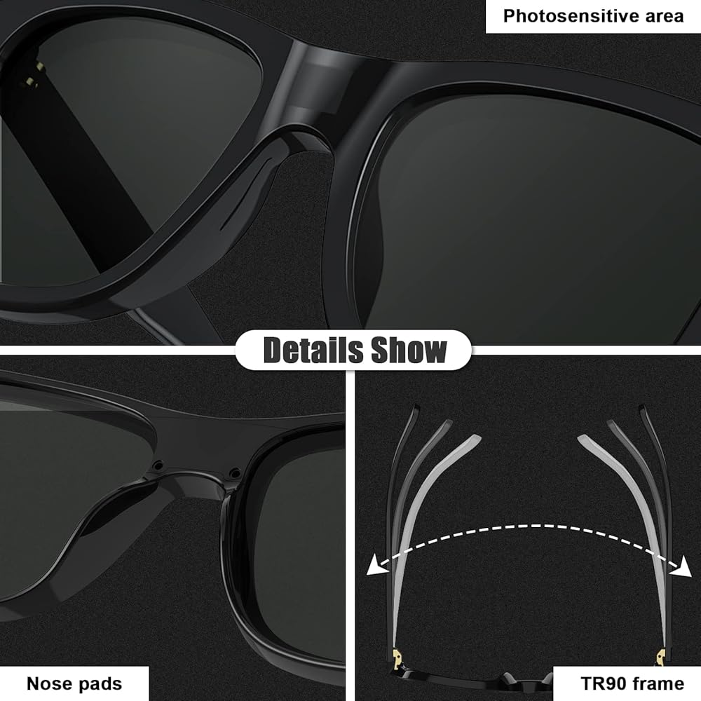 بلوتوث 5.0: هذه النظارات الشمسية الذكية مزودة بشريحة بلوتوث Actions 3015، والتي توفر نقل إشارة ثابت، وتدعم نقل الموسيقى عالي الجودة، وزمن الاستجابة المنخفض، وعدم التجميد، وتتمتع بجودة أفضل للمكالمات والموسيقى.