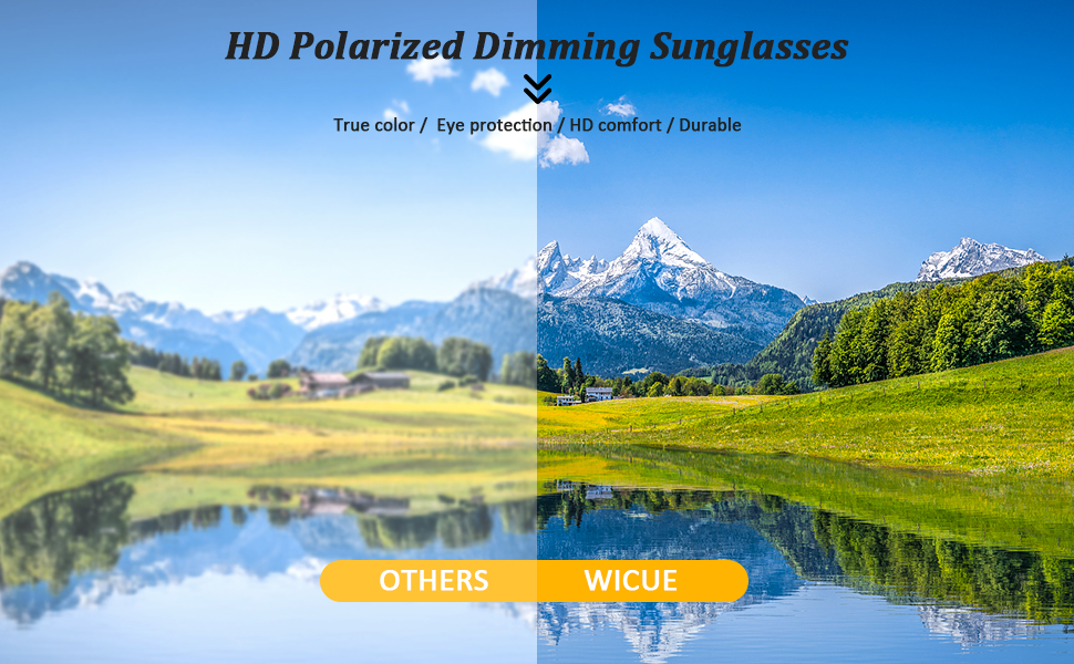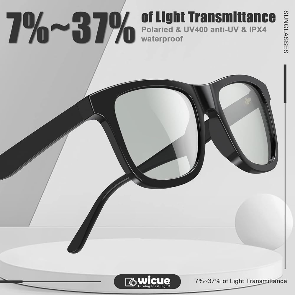 0.1 تعتيم: سوف تقوم نظارات Wicue الرياضية الشمسية بضبط نفاذية الضوء ذاتيًا من خلال تغيير الظلام للعدسات في 0.1 ثانية عندما تتغير شدة الضوء البيئي. إنه يحل هذه المشكلة حيث أن النظارات الشمسية الفوتوكرومية الأخرى الموجودة في السوق تغير لون العدسات بواسطة الأضواء فوق البنفسجية في فترة تتراوح بين 20 إلى 30 ثانية. يمكن للنظارات الشمسية أن تضمن للمستخدمين تجربة بصرية ممتازة في البيئات المتغيرة وفي الوقت نفسه توفر استخدام تحسين الأمان وتجنب التعب البصري.