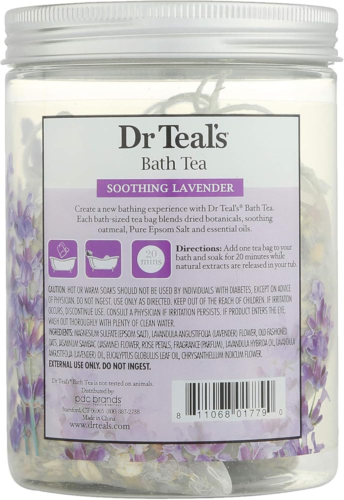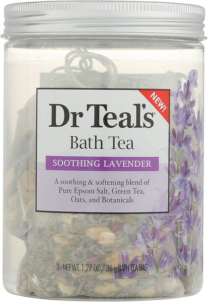 - مزيج مهدئ ومنعم من ملح إبسوم النقي والشاي الأخضر واللافندر والشوفان والنباتات