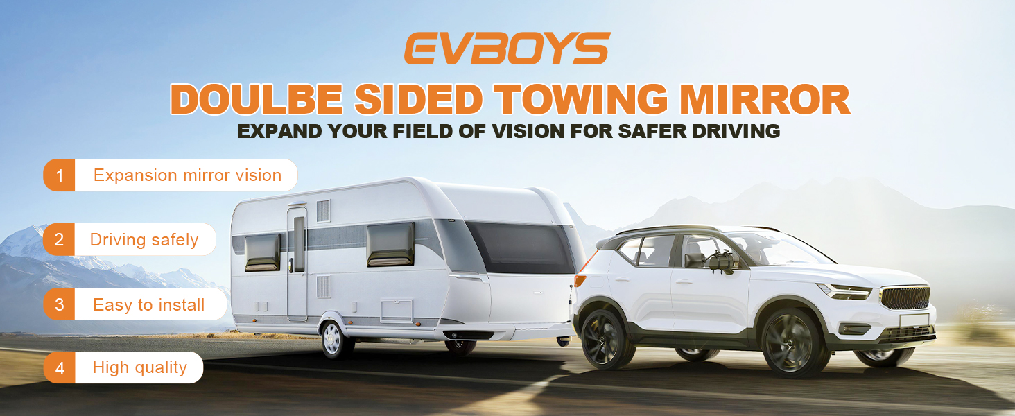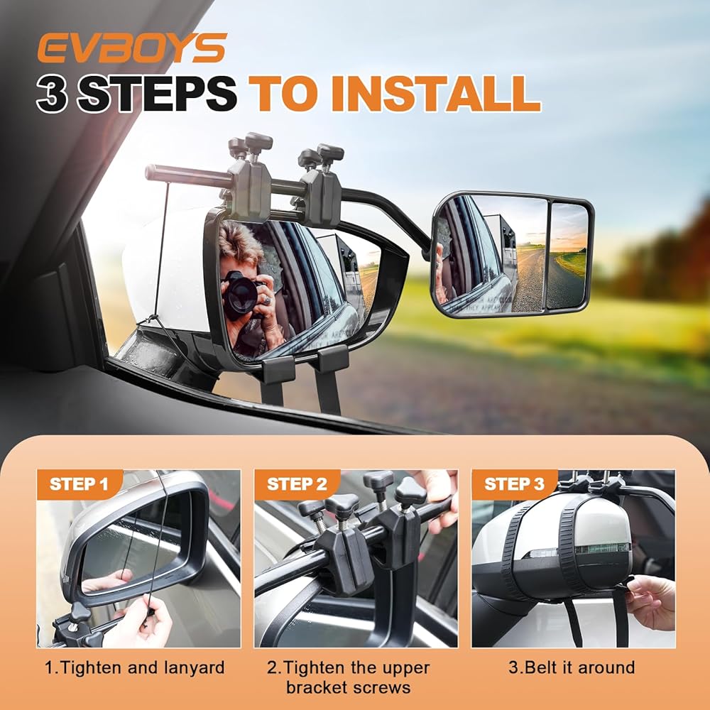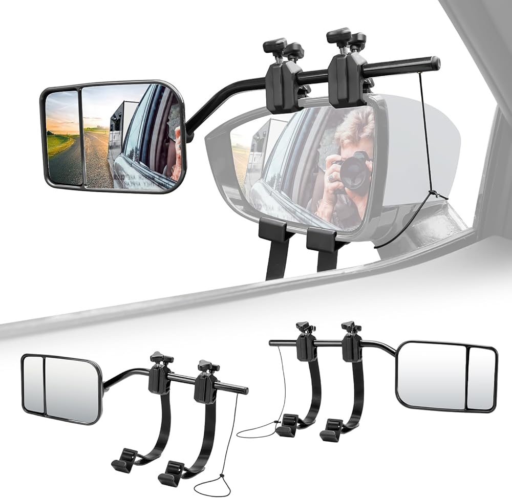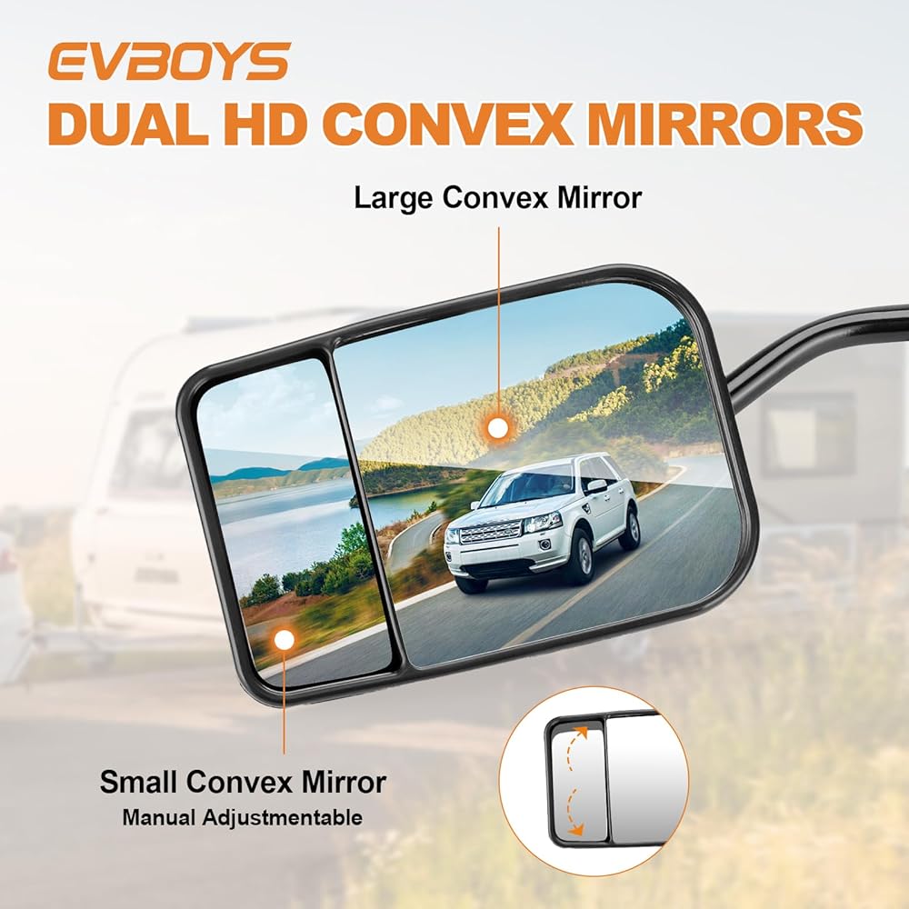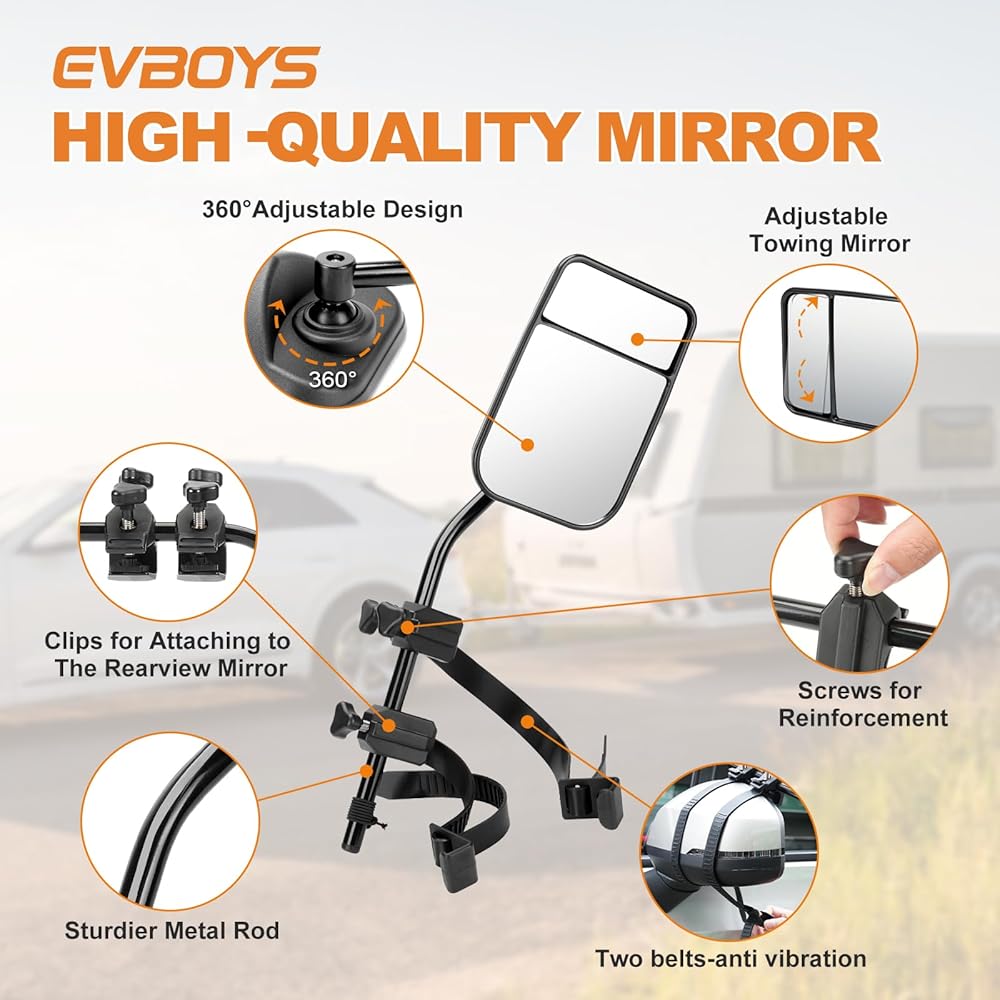 - EVBOYS مشبك عالمي على مرايا السحب 360 درجة قابلة للتعديل مرآة مقطورة موسع وصلة جر قوية دعامة حديدية موسعات مقطورة RV شاحنة سيارة مرايا للسحب