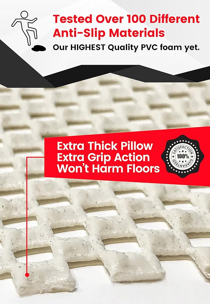 BREATHABLE AND PROTECTIVE – Grid construction allows rugs to breath through air circulation, and holding your rug in place it will reduce the wear and tear and add durability and strength to your rug's life. We are sure that anybody walks on your carpet, are in for the treat and not for the slip!