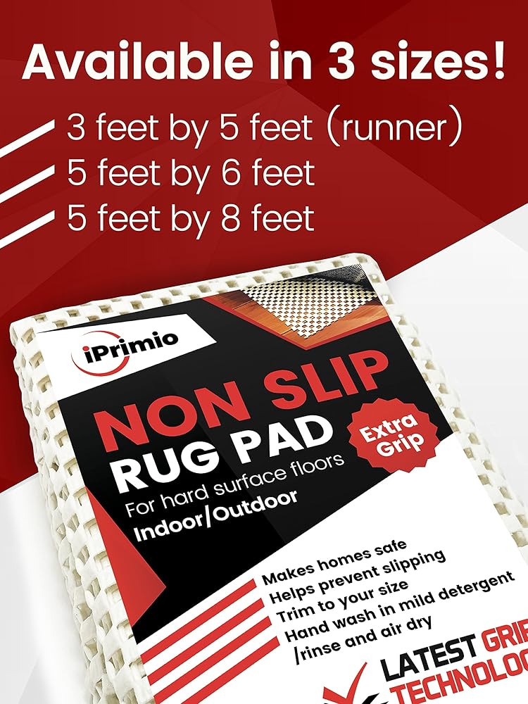 EASY TO INSTALL - Our non-slip rug corner grippers come in the most running pre-measured sizes to meet your needs. For need based sizes and shapes, trim iprimio pad with a scissor. Just put the pad down, place the rug on top and trim off any excess pad.