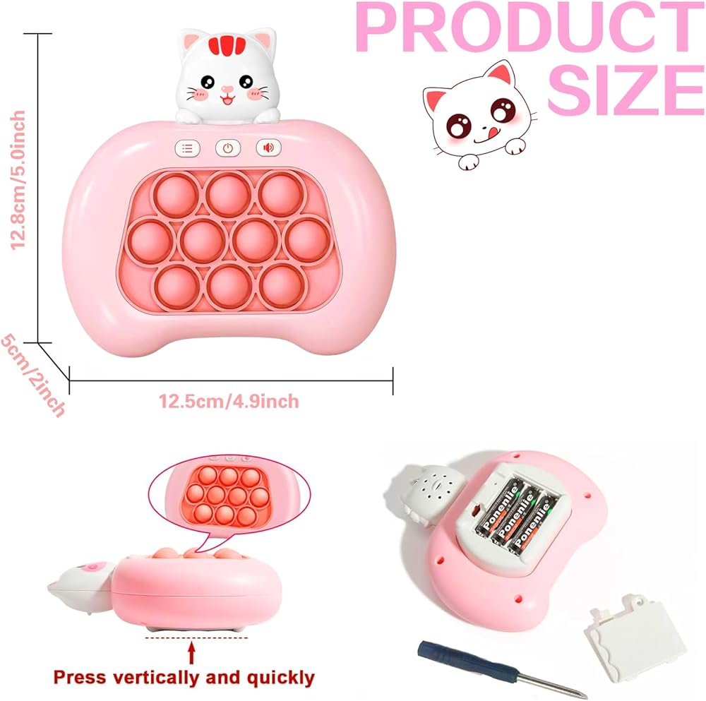 【لعبة البوب سريعة الدفع】 مع آلية الفقاعات المتفجرة الفريدة والموسيقى الديناميكية، اضغط على لعبة الدفع لتململ اللعبة الحسية يمكن أن تقلل من التوتر أو التعب أو القلق، وتمنحك راحة البال، وسيشارك الأطفال في التفكير الإيجابي، والتنسيق بين اليد والعين، وتدريب الدماغ أثناء تحديات اللعب المليئة بالأضواء والأصوات، مما يعزز النمو الحسي لطفلك.