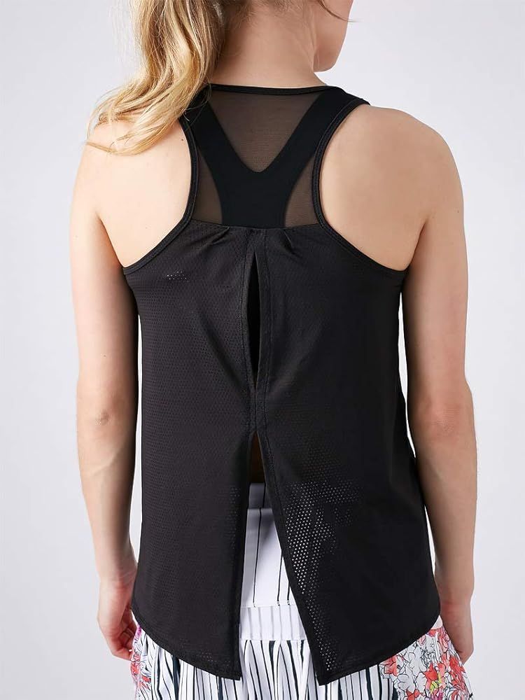 The Lucky in Love Core Tie Back Tank has a scoop neck with ruching, racerback and can be tied up or left down in the back.