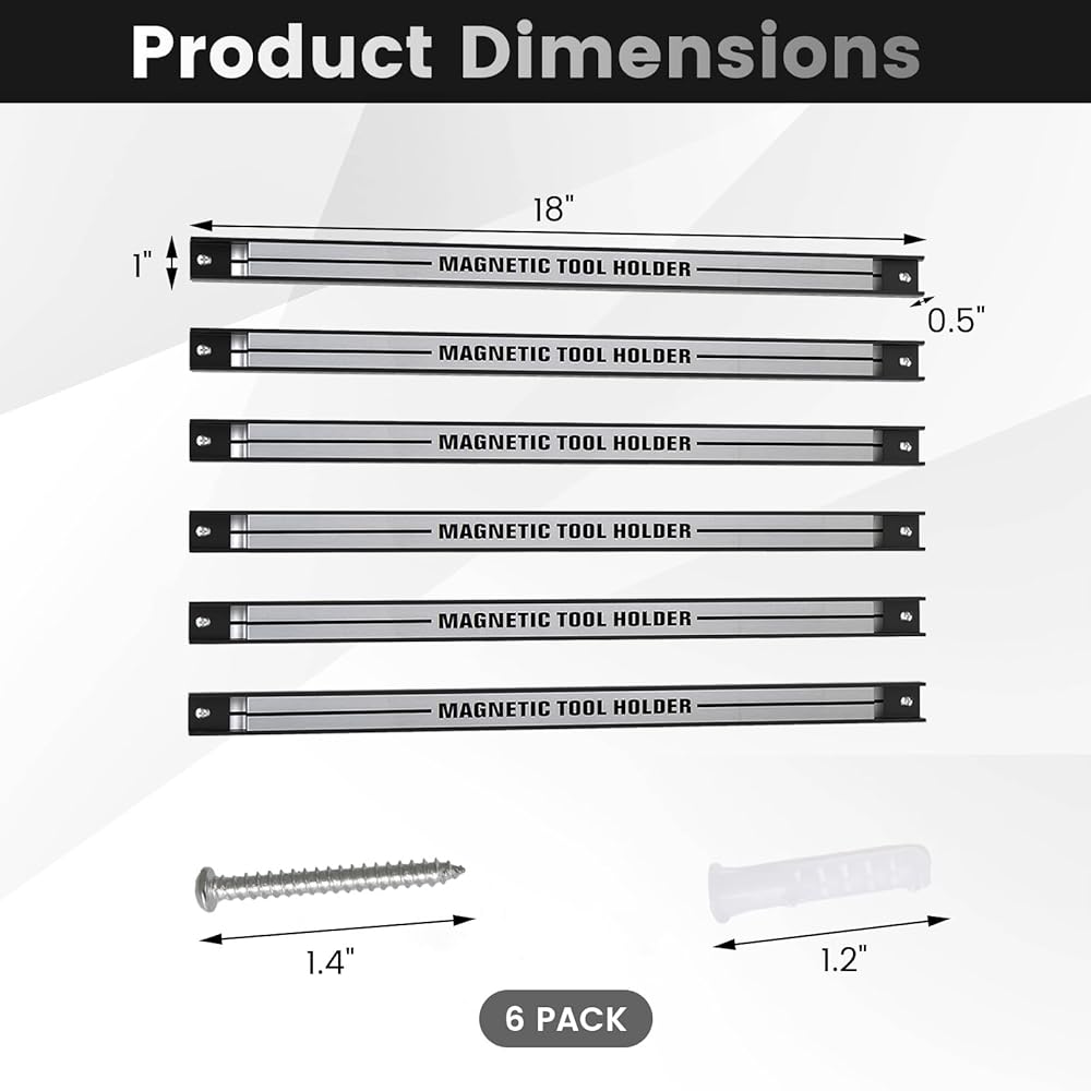【مجموعة فعالة من حيث التكلفة】 مجموعة حامل الأدوات عالية الجودة المكونة من 6 قطع مقاس 18 بوصة هي أفضل خيار فعال من حيث التكلفة في السوق، نحن واثقون من أنك ستكون راضيًا بنسبة 100% عن قضبان الأدوات المغناطيسية هذه.