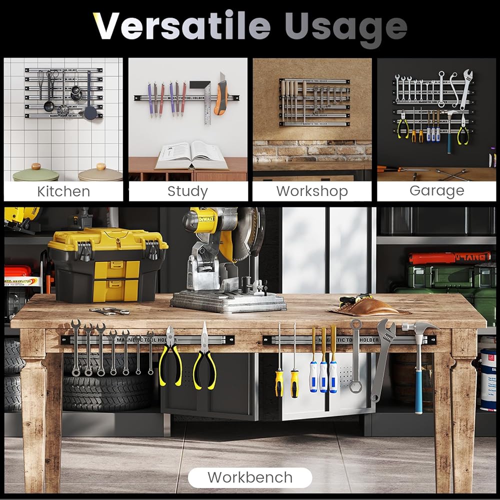 【سعة وزن قوية】تم تصميم هذا الشريط المغناطيسي عالي التحمل بإطار مسطح من الفولاذ الصلب، والذي يمكنه حمل العديد من الأدوات الفردية التي يصل وزنها إلى 22 رطلاً. لذلك، سيكون مغناطيس الأدوات خيارًا جيدًا للرجال الذين لديهم أدوات حولهم.
