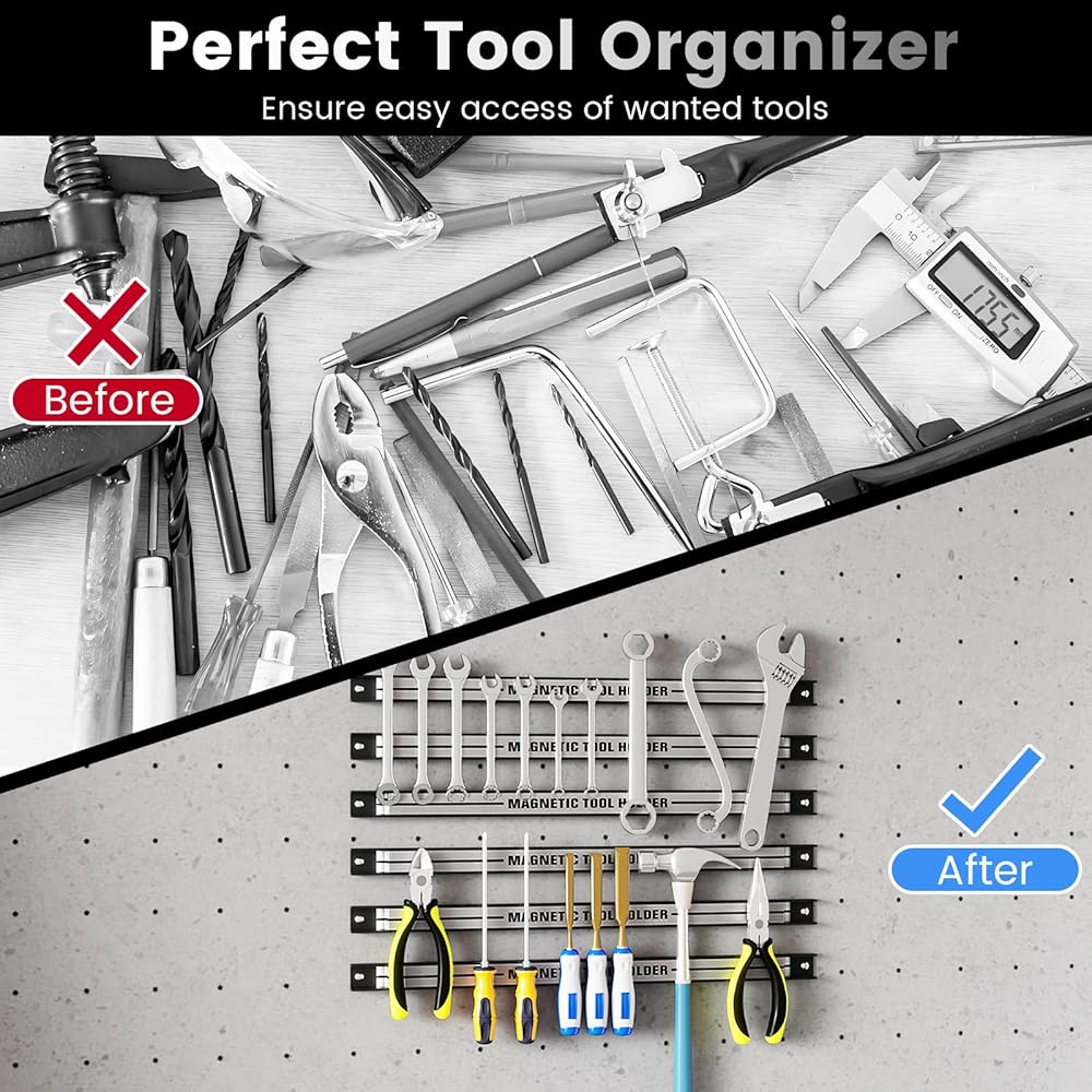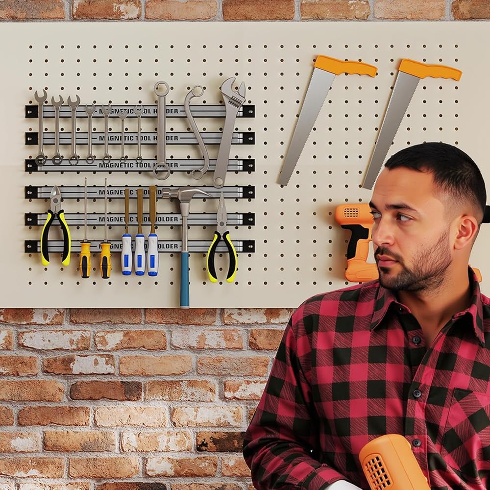【سهلة التجميع】ثقوب التثبيت المثقوبة مسبقًا من أجل محاذاة مثالية ويمكن بسهولة توصيل القضبان معًا. يمكن تثبيت هذا الشريط المغناطيسي للأدوات على الجدران أو الخزانات أو ألواح التثبيت أو في أي مكان تريده.