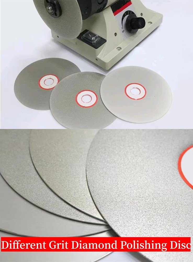 [2 قرص تلميع ماسي مختلف]: يوجد قرصين مسطحين مختلفين من الماس، وهما على التوالي #1000 #2000، إذا قمت بإجراء طحن دقيق استخدم 1000 حبيبة؛ إذا كنت تقوم بطحن التلميع، فاستخدم 2000 حبيبة رملية، وعدد كافٍ من أقراص تلميع الماس للطحن