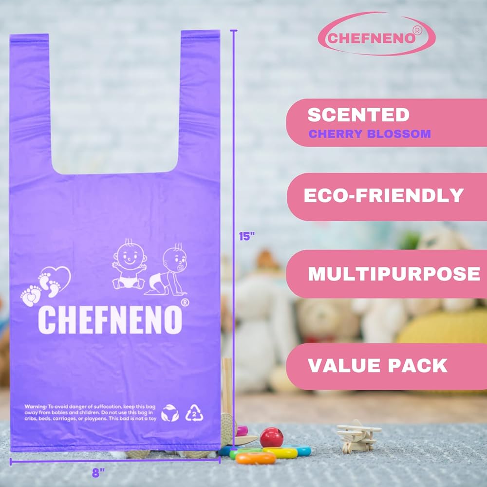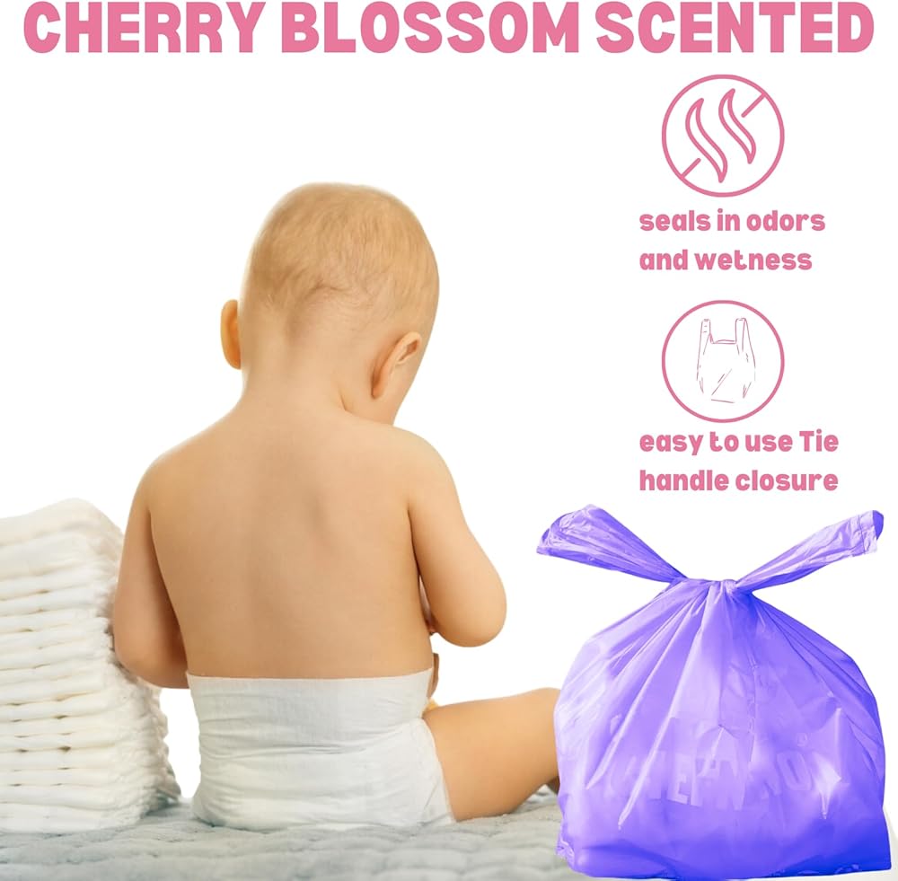 •  معطرة بشكل خفيف: حقائب الحفاضات التي تستخدم لمرة واحدة لدينا غنية برائحة زهرة الكرز الخفيفة لاحتجاز الرائحة والحفاظ على الرائحة المحيطة نظيفة ومنعشة.