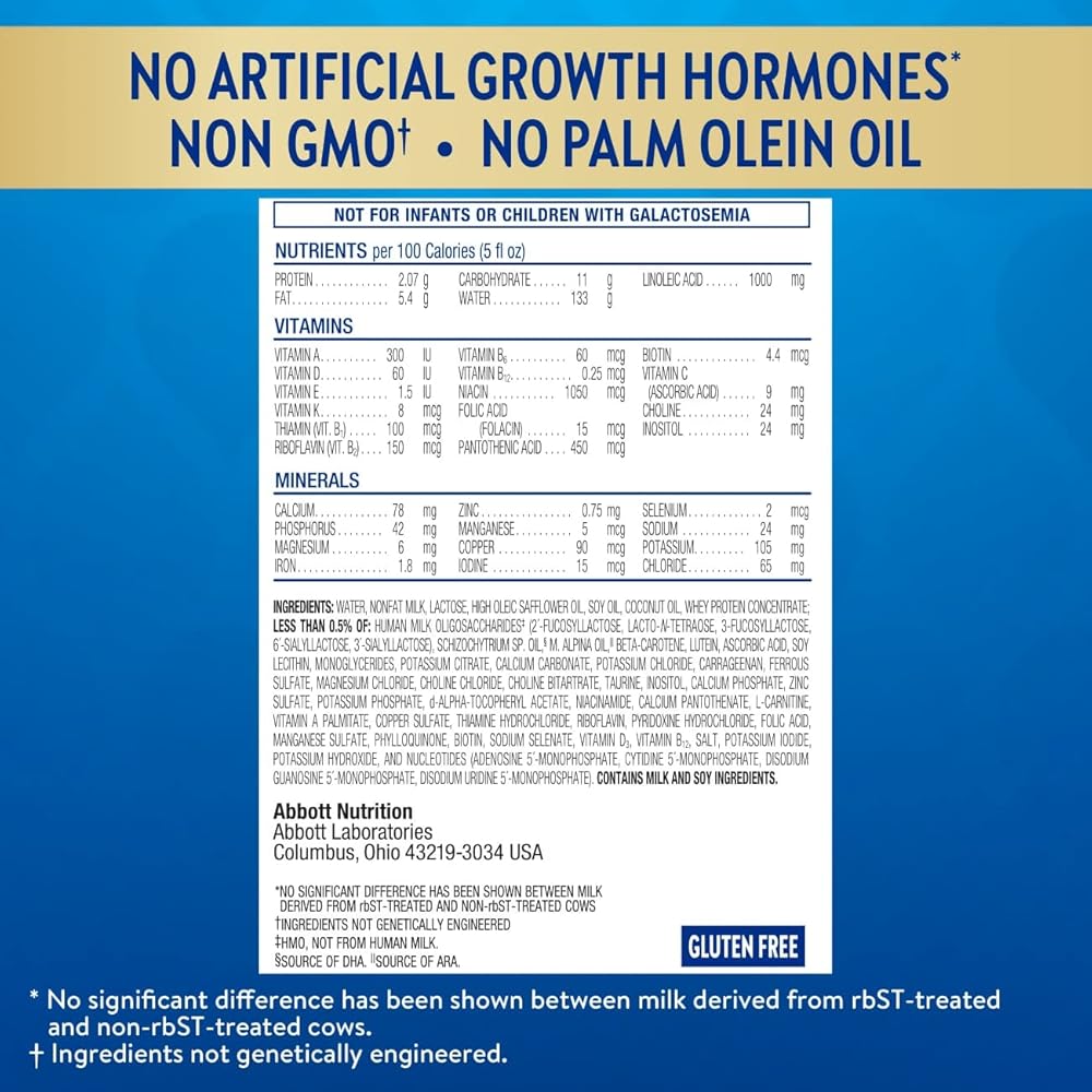 NO ARTIFICIAL GROWTH HORMONES & NON-GMO: Similac was the first leading infant formula brand with no artificial growth hormones. Similac 360 Total Care contains ingredients that are not genetically engineered