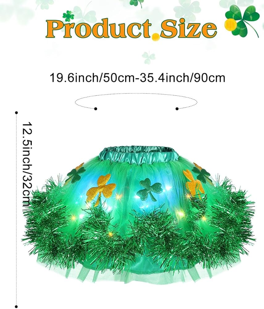 تتميز تنورة توتو المهرجان بتصميم فريد من نوعه مع خيوط مضيئة، ولكنها خفيفة الوزن ومريحة في الارتداء. تحتوي سلسلة الإضاءة على 3 أوضاع: ضوء ثابت، فلاش سريع، فلاش بطيء. أنت حر في اختيار الوضع المفضل لديك.