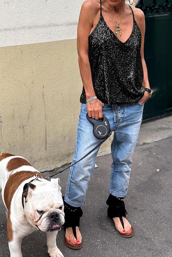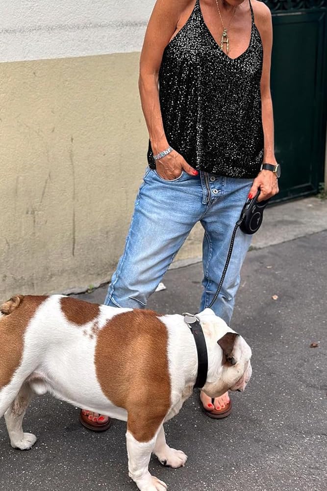 When in doubt, bring sparkle to your night out! Decked in sequins all over, this Sequin Tank Top assures you shine. Adjustable spaghetti straps keep it secure with a Linened. Frame your favorite necklace with the V-neck and make this look your own!