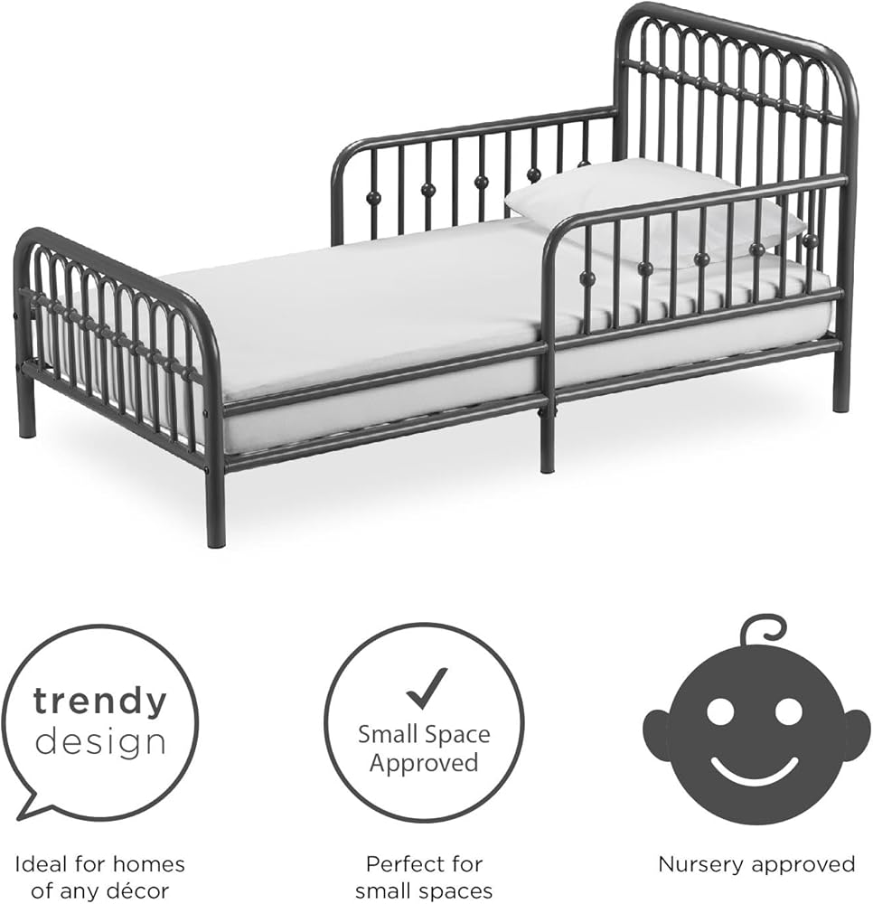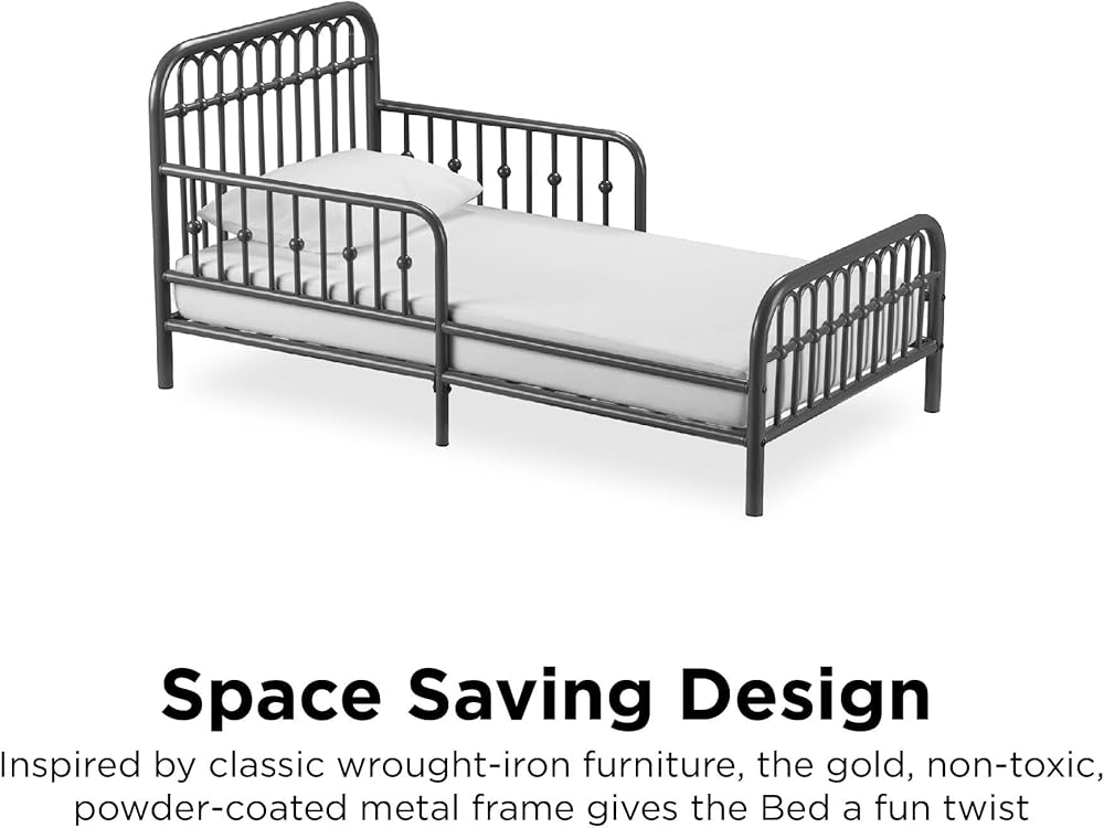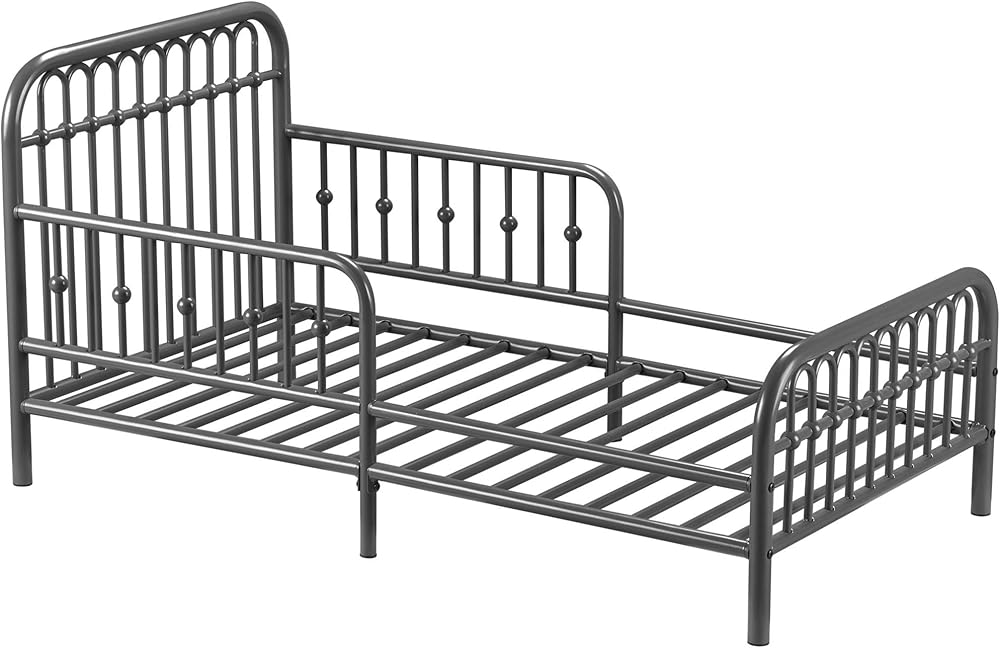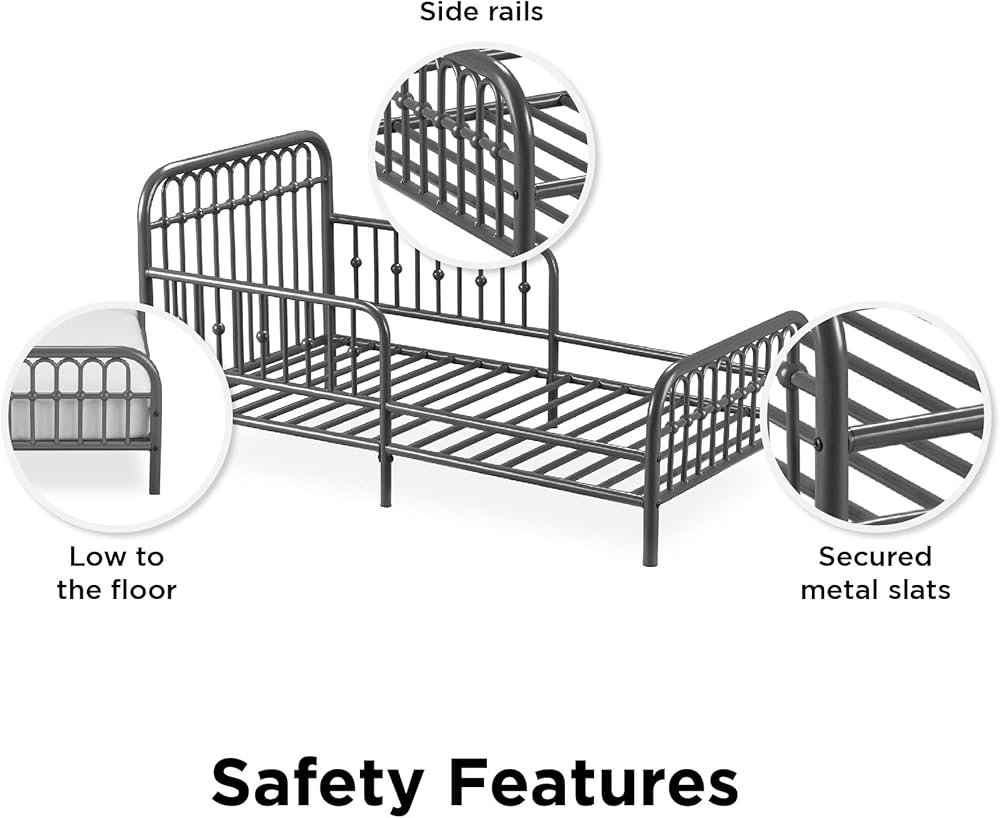 Kid-Friendly Design: If your active little boy or girl is all set on leaving their crib behind, they will be smitten with this metal toddler bed that gives them the perfect low-profile height for getting in and out of bed without adult supervision