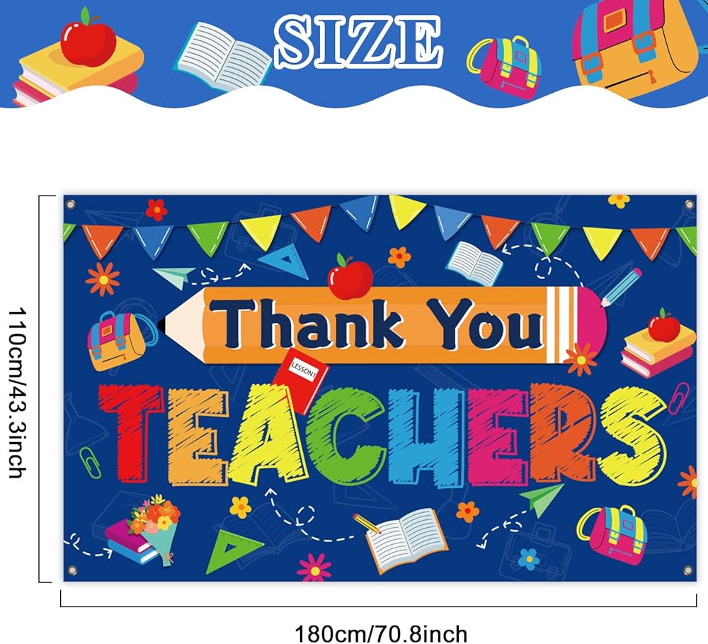 【متينة وقابلة لإعادة الاستخدام 】خلفية شكرًا لك المعلم مصنوعة من البوليستر خفيف الوزن والمتين والقوي، وقابلة للغسل وإعادة الاستخدام، وهي زينة رائعة لحفلات أسبوع تقدير المعلمين للفصل الدراسي أو المكتب أو الغرفة.