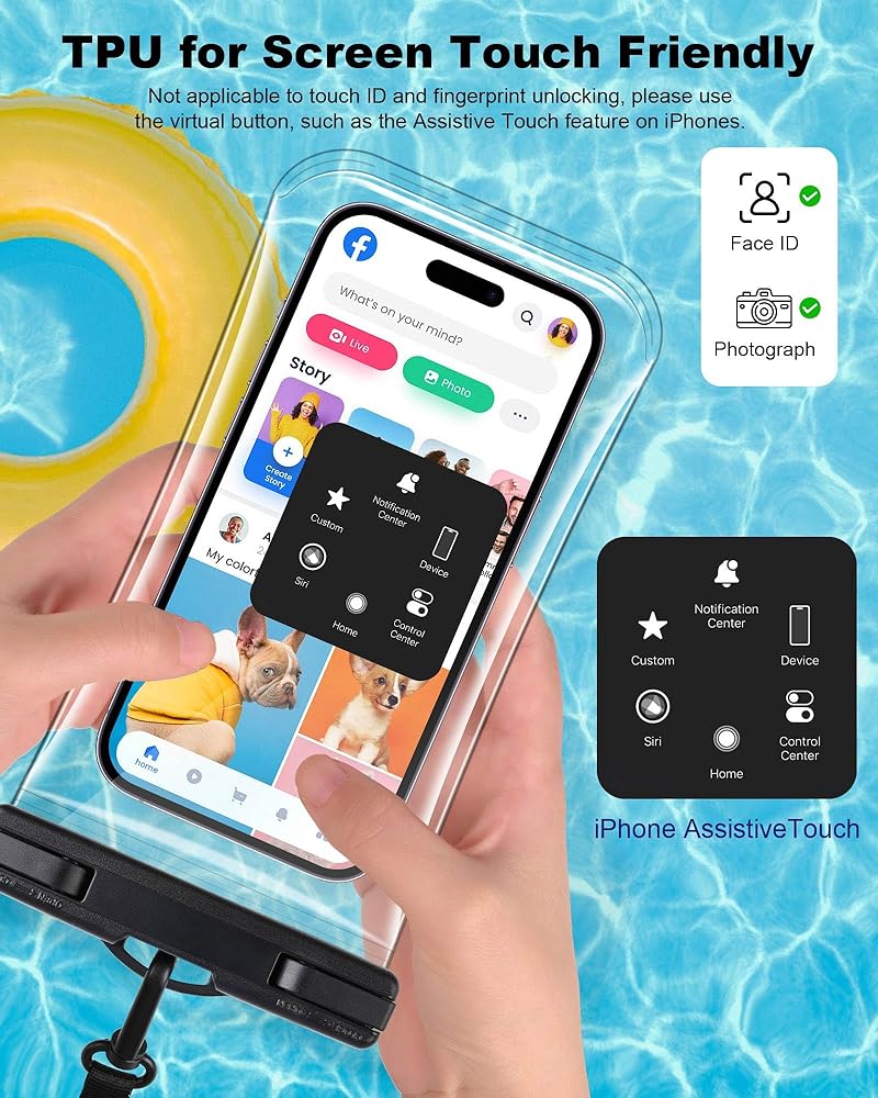 • [ترقية مادة TPU]: مصنوعة من مادة TPU الصديقة للبيئة، هذه الحقيبة المقاومة للماء تعزز حساسية شاشة اللمس وتحسن فتح الهوية والمكالمات، مع تقليل التصاق الهاتف المرتبط بمواد PVC.