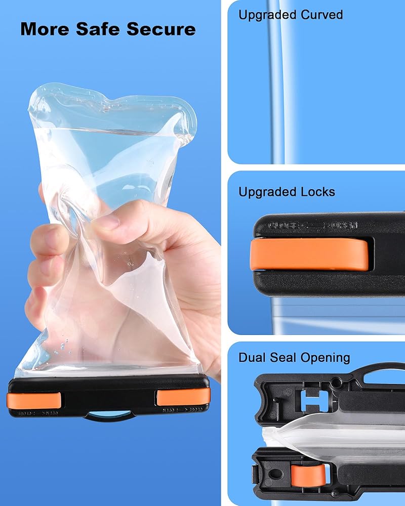 • [تصميم منحني مطور لعام 2024]: تتميز الحقيبة المقاومة للماء بجوانب منحنية، مما يعزز الوصول إلى أزرار الصوت والطاقة ويعالج القيود المسطحة للحقيبة التقليدية المقاومة للماء.