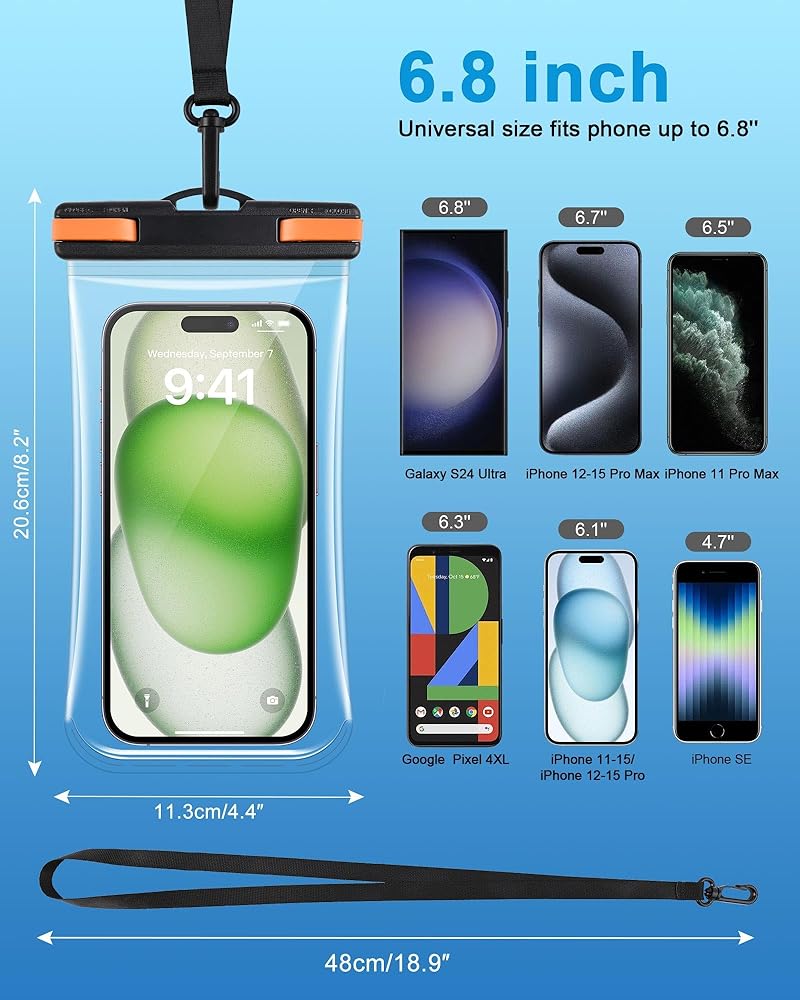 • [توافق عالمي]: تتميز الحقيبة المقاومة للماء بتصميم منحني فريد، وهي متوافقة مع حافظات OtterBox التي يصل سمكها إلى 0.57 بوصة (1.47 سم). حتى مع وجود هذه الحافظات كبيرة الحجم، فإنها تناسب تمامًا موديلات 6.7 بوصة مثل Apple iPhone 14-15 Plus و12-15 Pro Max. يمكن للهواتف ذات الشاشات الصغيرة أو الحافظات الأقل حجمًا أن تنزلق بسهولة داخل الحقيبة أيضًا. إذا كان حجمه أكبر، يرجى إزالة حافظة الهاتف وإدخالها.