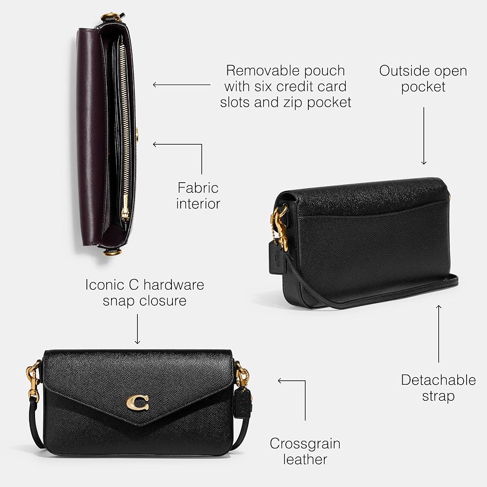 Editors Notes: The Wyn crossbody invites organization with an elegant envelope design. Finished with an exterior slip pocket for easy access to essentials, it features an open interior with a removable zip pouch that can be used on its own