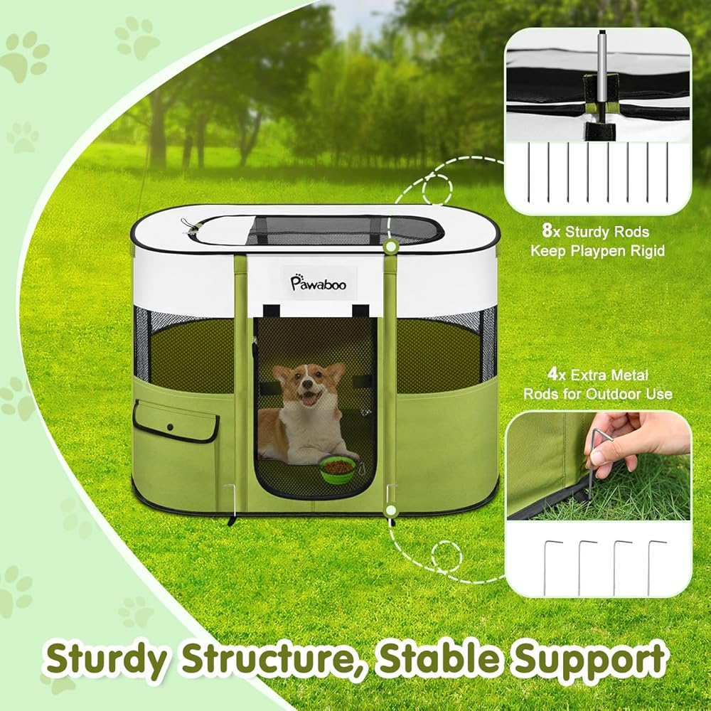 【قابل للطي والحمل】يتميز بيت الجرو هذا بتصميم قابل للطي سهل التشغيل ومريح لك للطي وأخذه إلى أي مكان. مجهزة بحقيبة سفر ووعاء للحيوانات الأليفة قابل للطي، حقيبة السفر مناسبة لك للتخزين، بينما يمكن استخدام وعاء الحيوانات الأليفة أثناء التخييم في الهواء الطلق.