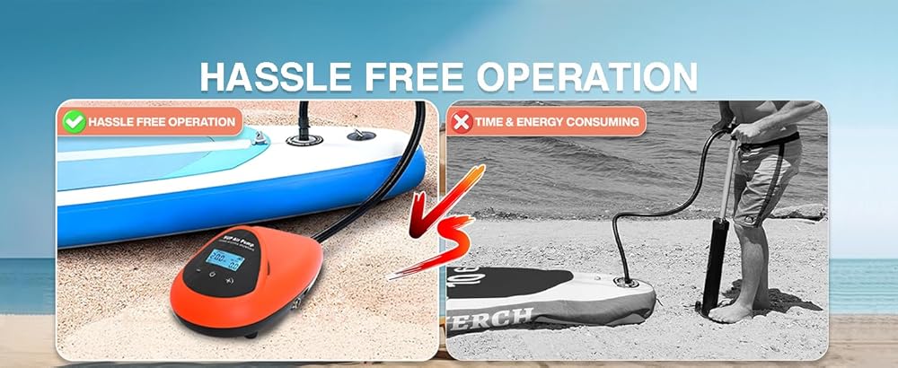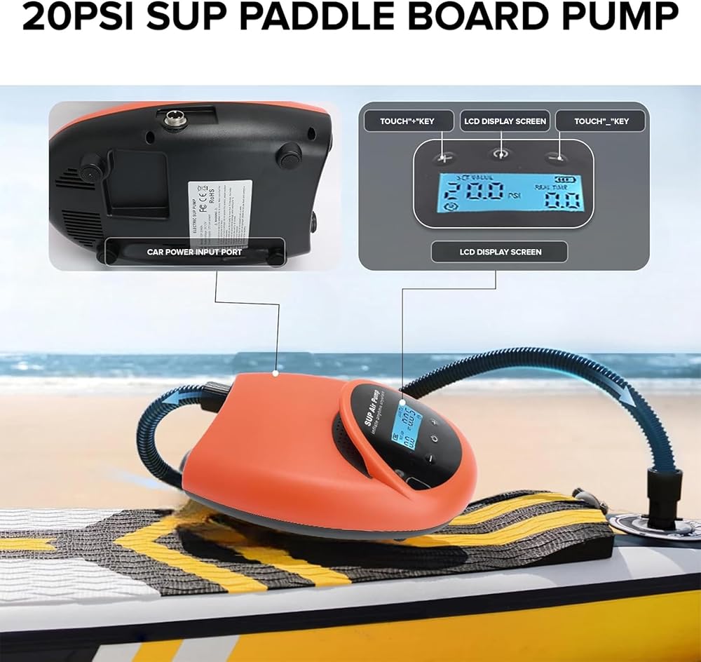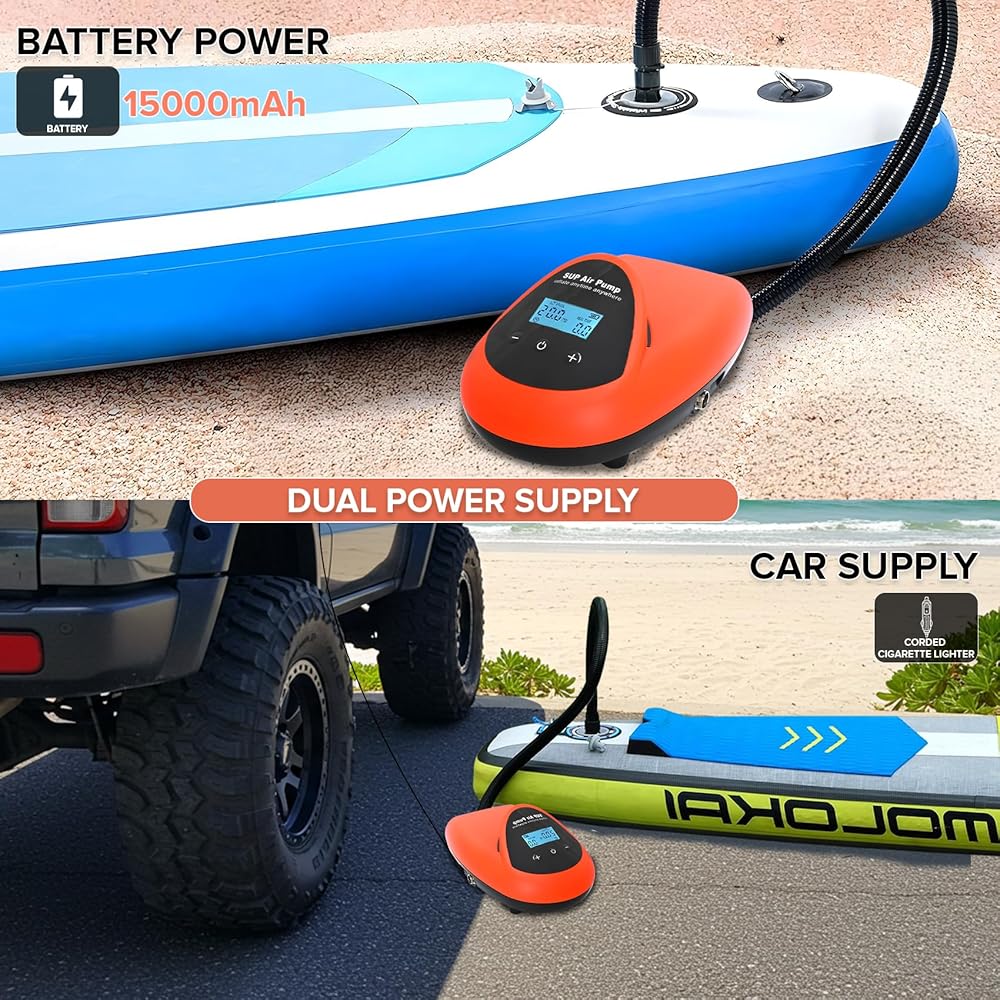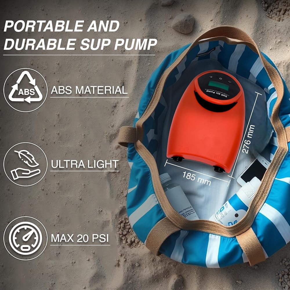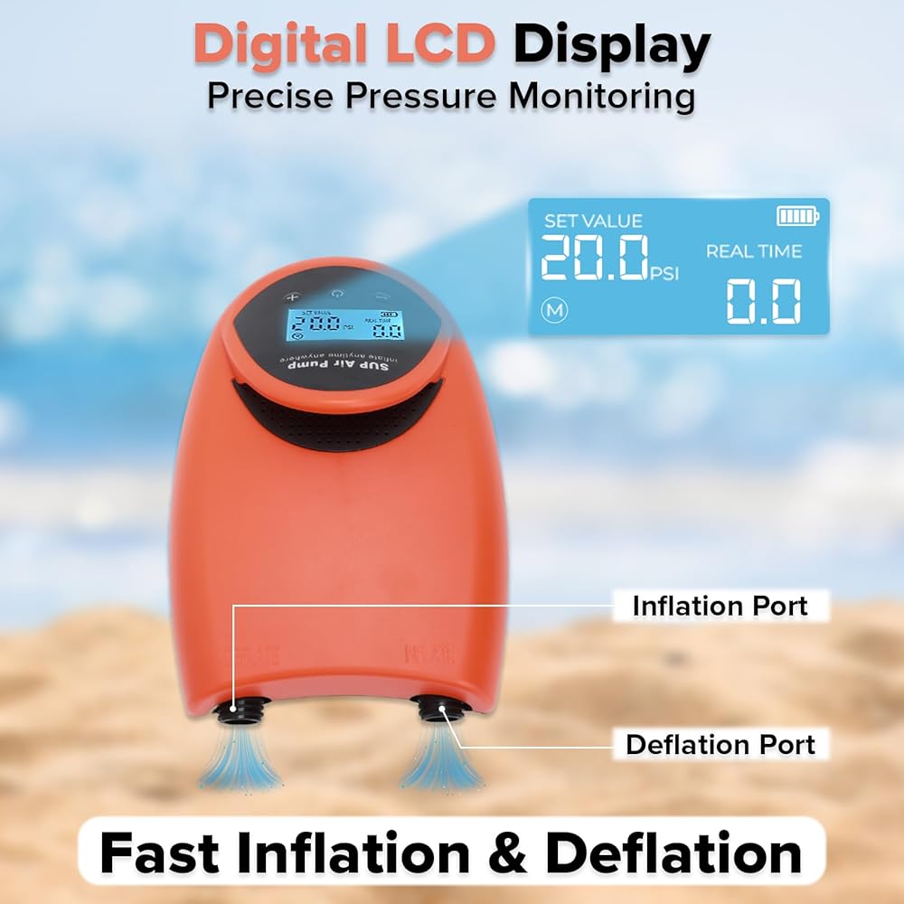 مضخة هواء SUP قوية وفعالة - تتميز بمحركنا المصمم حديثًا وتقنية النفخ ثنائية المرحلة (350 لتر/الدقيقة و70 لتر/الدقيقة)، تقوم مضختنا بنفخ لوح التجديف بسرعة من 0 رطل لكل بوصة مربعة إلى 20 رطل لكل بوصة مربعة في 7 دقائق فقط. علاوة على ذلك، يتيح تصميمنا المبتكر تفريغ الهواء بسرعة، مما يؤدي إلى طي SUP بالكامل في 3 دقائق. هذا النظام السريع والقوي ليس أسرع فحسب، بل أكثر هدوءًا من الطرازات السابقة.