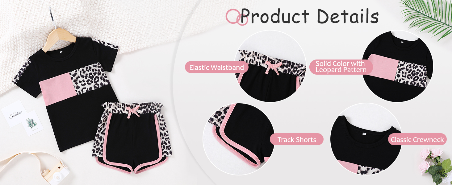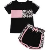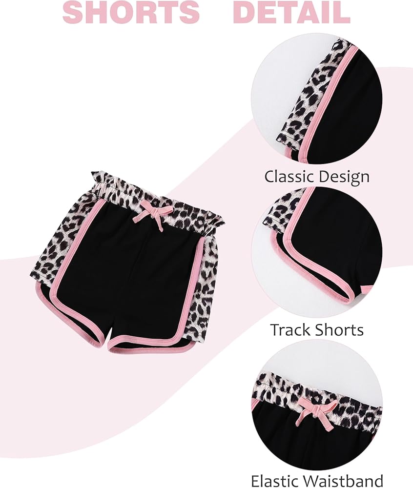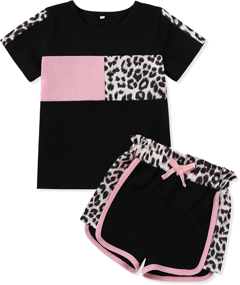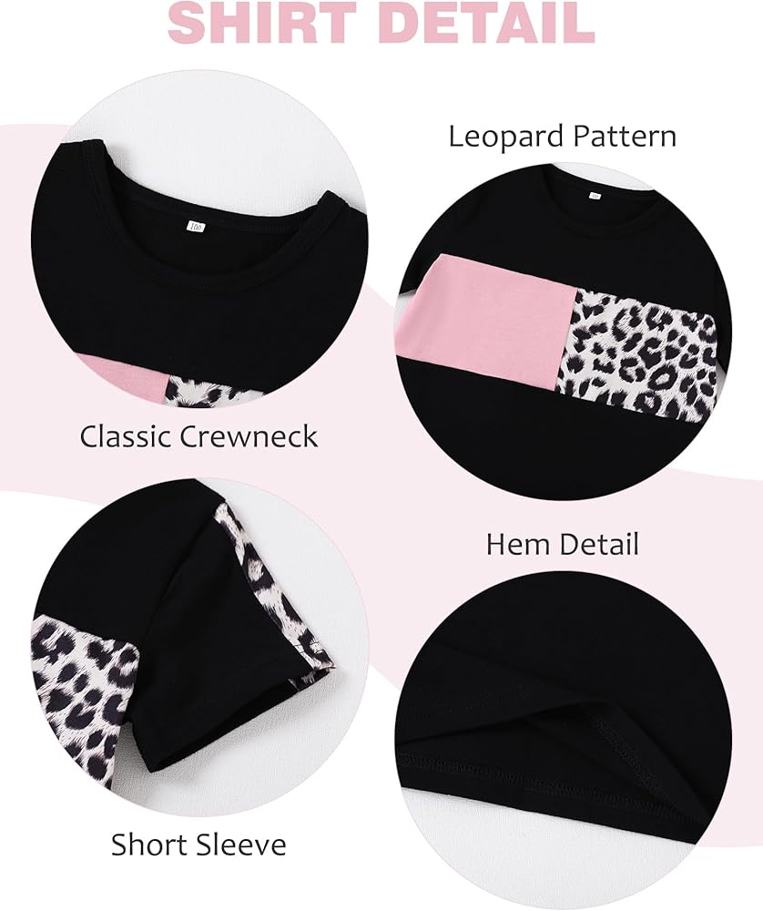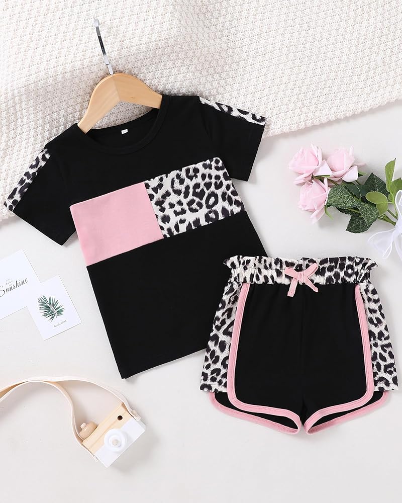 تصميم كلاسيكي: تتميز مجموعة ملابس الفتيات الصغيرات لدينا بطباعة كلاسيكية مموهة أو وردية أو سوداء على شكل نمر، وتتضمن تي شيرت برقبة دائرية وسروال قصير مرن لمظهر عصري ورائع.