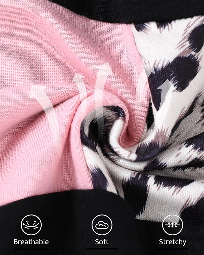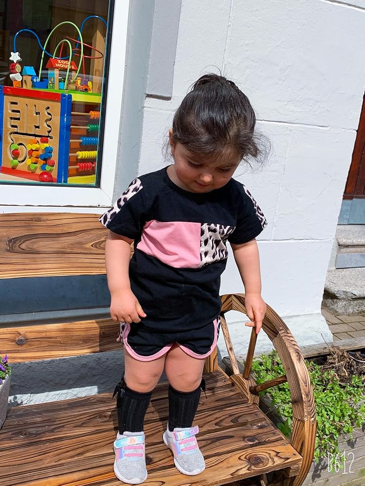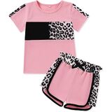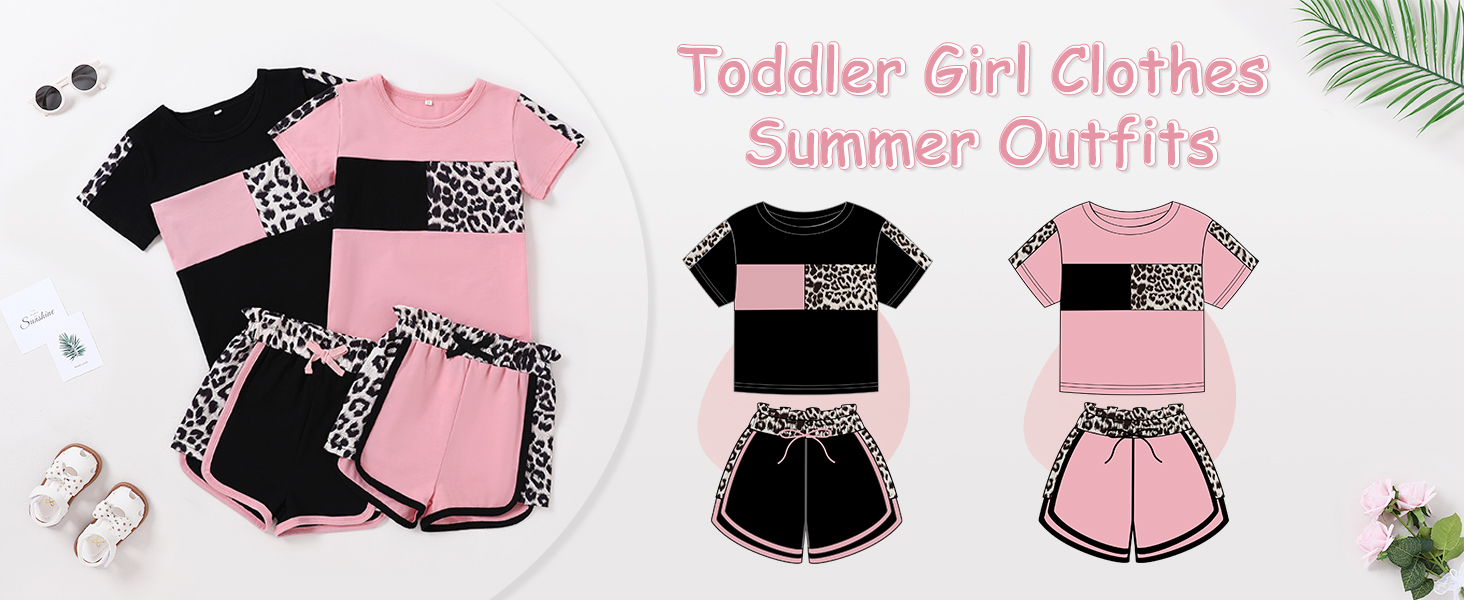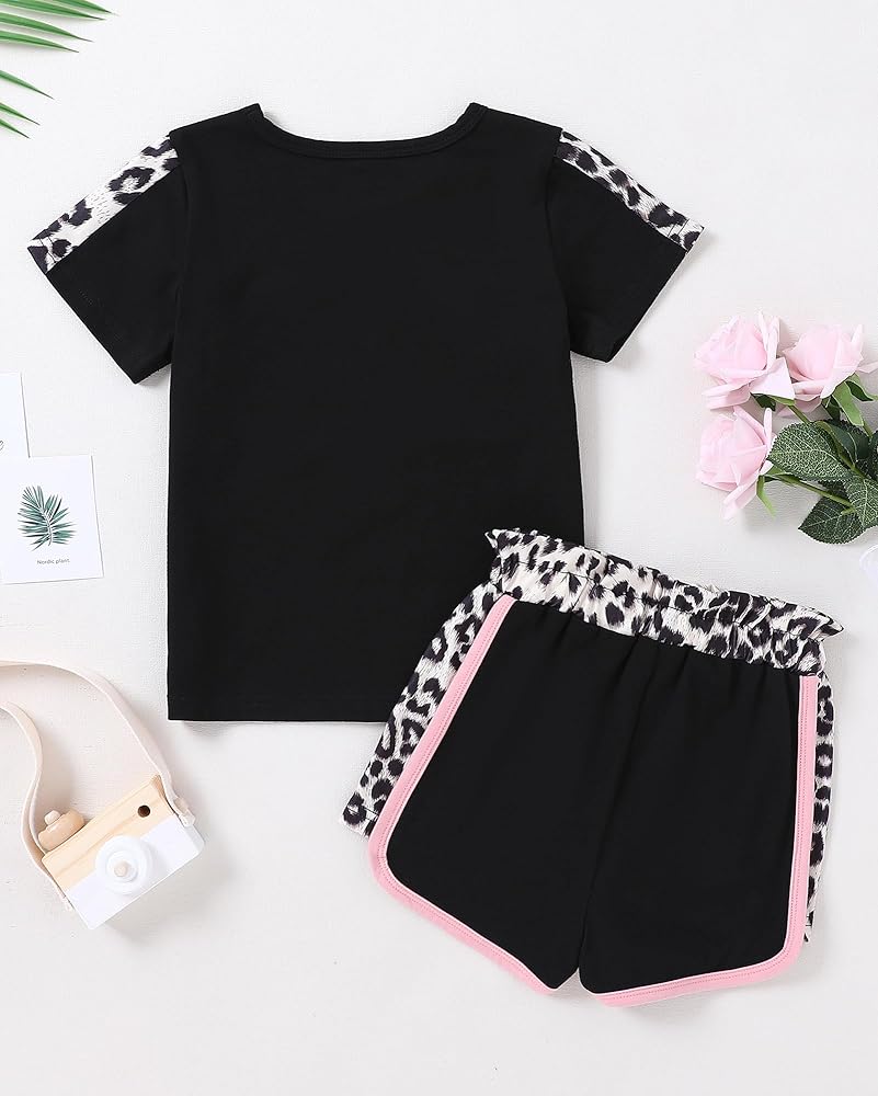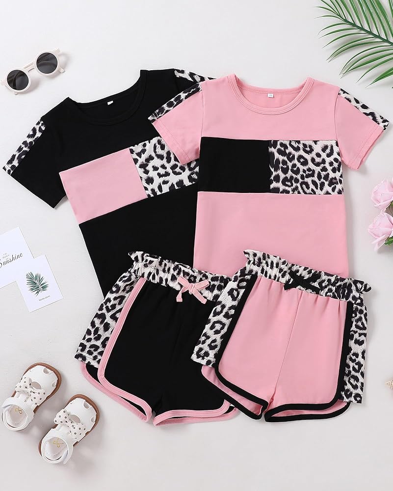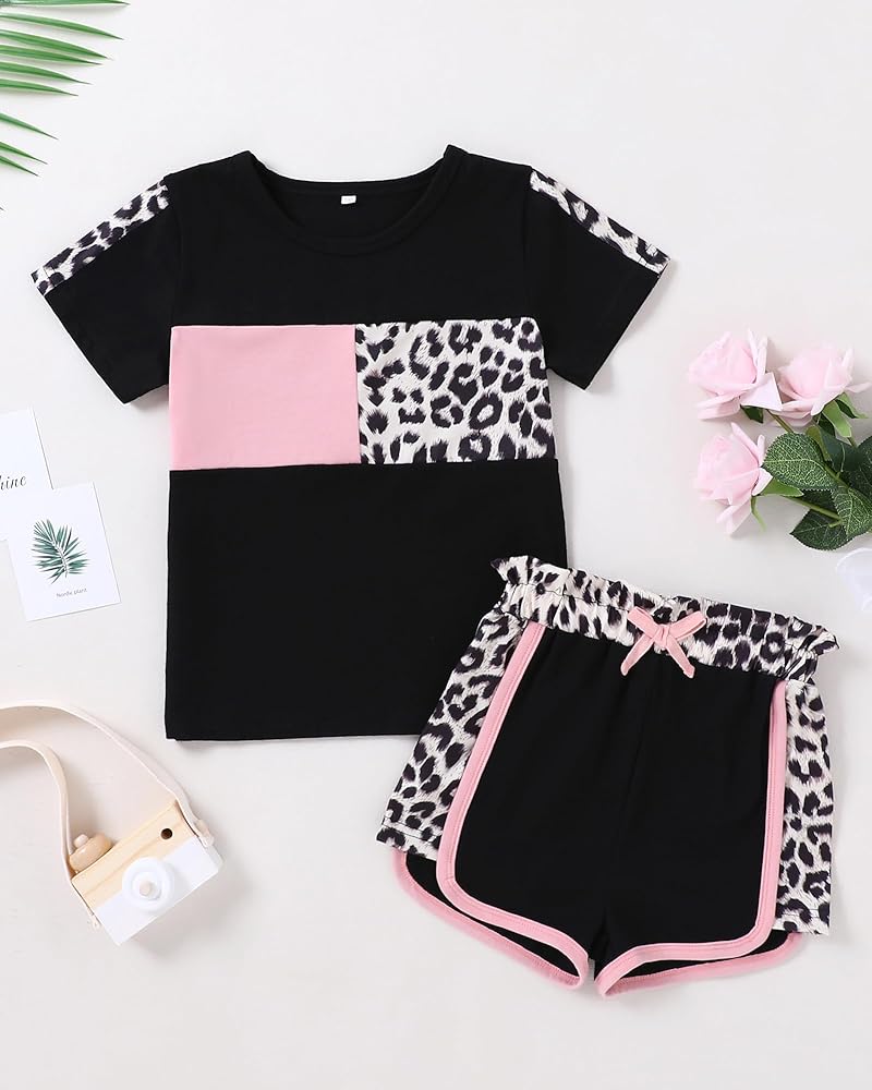 تصميم كلاسيكي: تتميز مجموعة ملابس الفتيات الصغيرات لدينا بطباعة كلاسيكية مموهة أو وردية أو سوداء على شكل نمر، وتتضمن تي شيرت برقبة دائرية وسروال قصير مرن لمظهر عصري ورائع.