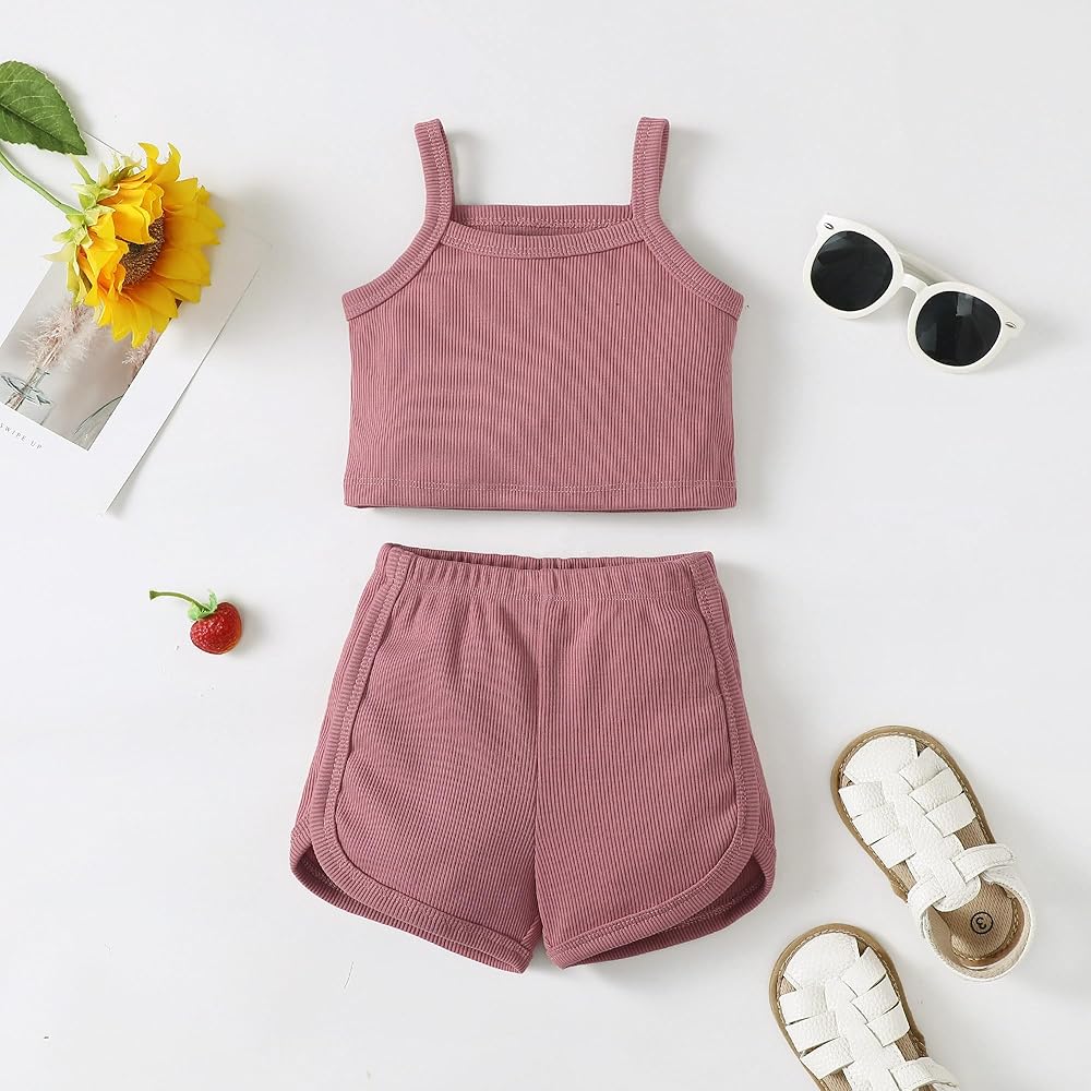 ○ ملابس صيفية مكونة من قطعتين: ملابس للفتيات الصغيرات، مجموعة ملابس داخلية بدون أكمام، ملابس داخلية بأشرطة سباغيتي، بدلة للأطفال الصغار، سراويل قصيرة للأطفال الصغار، مجموعة ملابس صيفية للفتيات الصغيرات من قطعتين، ملابس الفتيات الصغيرات هذه ستجعل طفلتك الصغيرة أكثر سحرًا ورائعة.