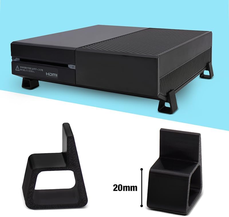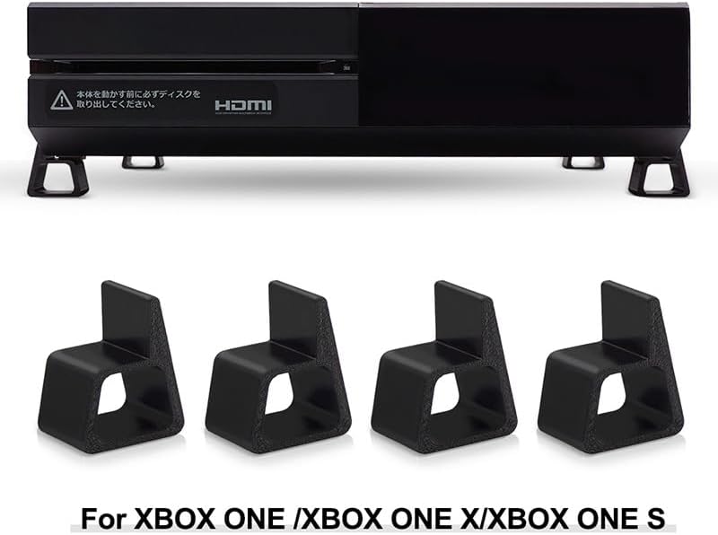 The 3D Printed Cooling Feet Bracket Accessories designed to be used as a horizontal stand for Xbox One, Xbox One X / S console. It helps to keep the console elevated from the surface of the desk, allowing for better heat dissipation.