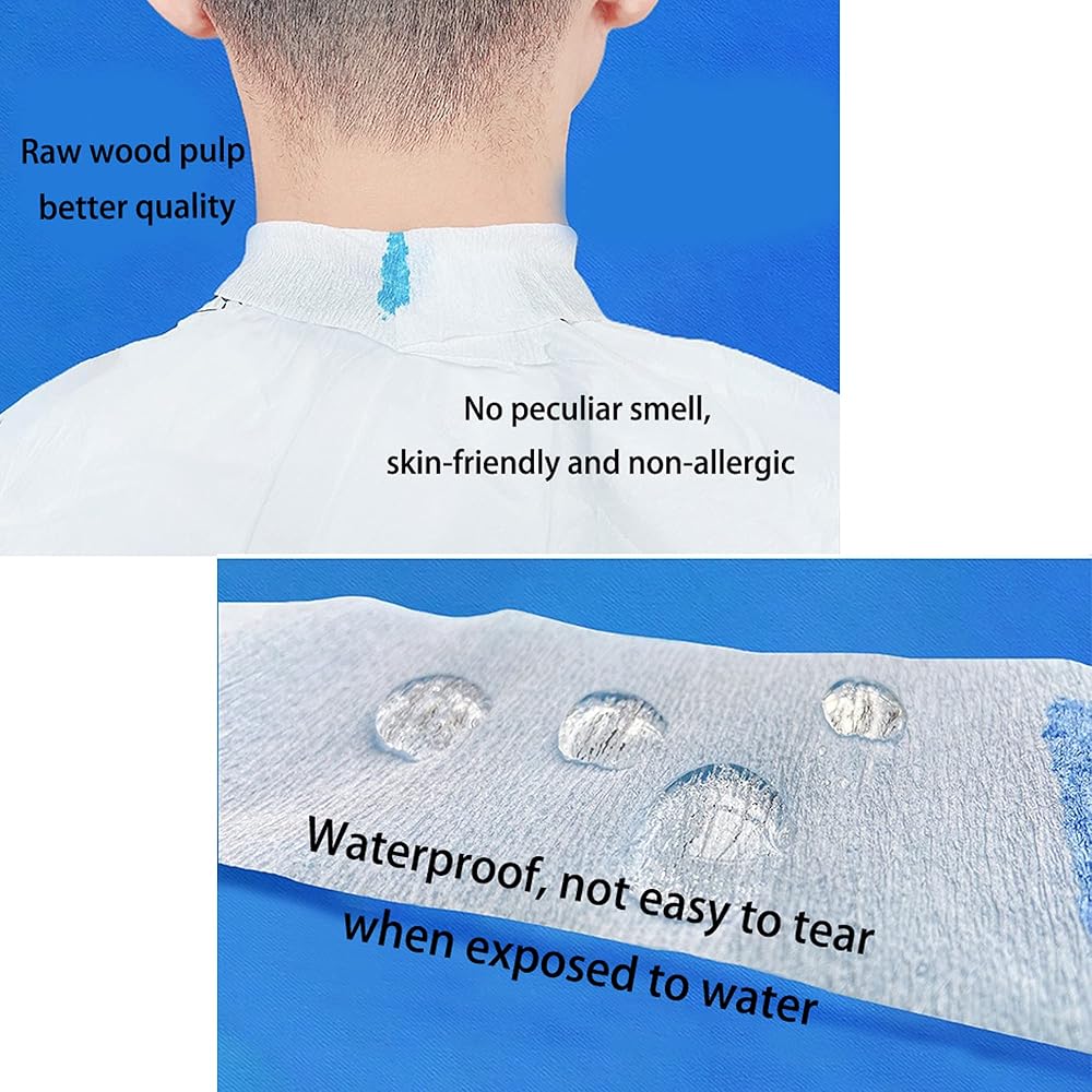 • Material: The haircutting neck wrap is made of high-quality a paper wood pulp, it is mild to the skin, not allergic, elastic and sticky. It won't rot in water. It is a good helper for barbershop or household barber.