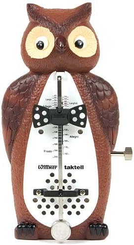 These fun Owl design metronomes are particularly suitable for children while adults love them too! It's made of heavy plastic, but don't let that fool you, this great metronome is not a toy and is full of Wittner quality. This lovable Owl metronome is a favorite with students, parents and teachers alike! The colorful Owl helps inspire young musicians to play, and add a sense of fun to practice days. The traditional clockwork pendulum mechanism offers a range of 40 bpm to 200 bpm, with clicks to mark each beat, simply slide the bowtie to adjust the speed! Standing 8" high, this wise owl will add a little magic to those boring scales and exercises!