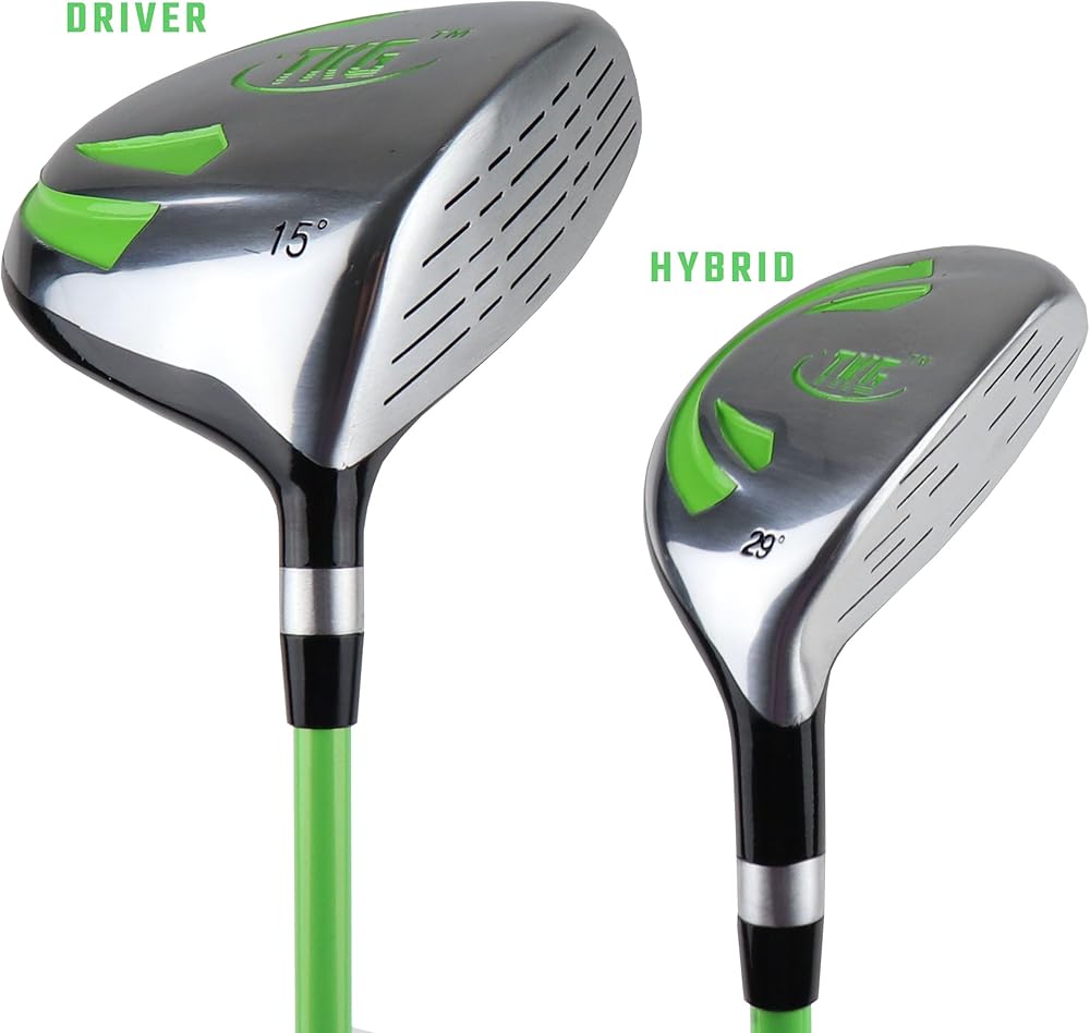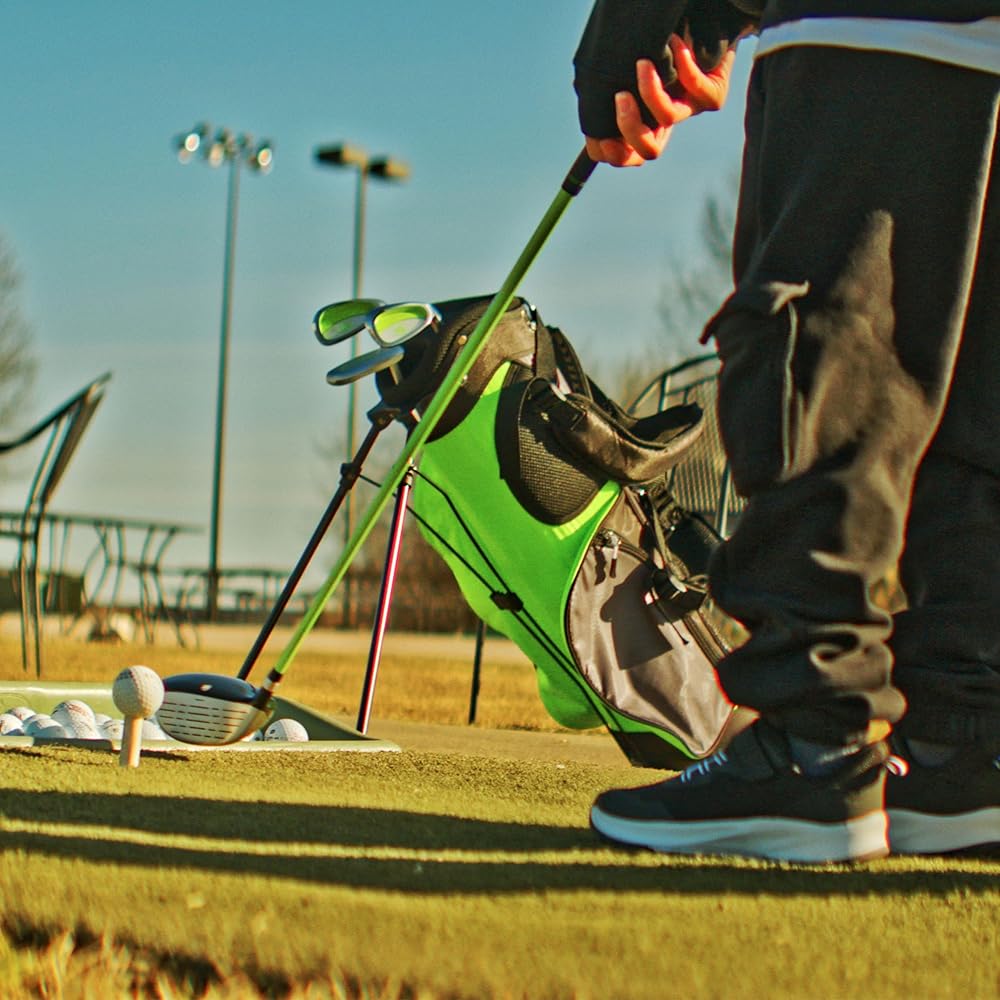 مجموعة المبتدئين: تتضمن 3 كرات جولف، و3 تي شيرتات جولف، ومنشفة، وقفاز، وسائق مع غطاء للرأس، و7 مكواة، ومضرب، وحقيبة حامل جولف مع غطاء مطر.