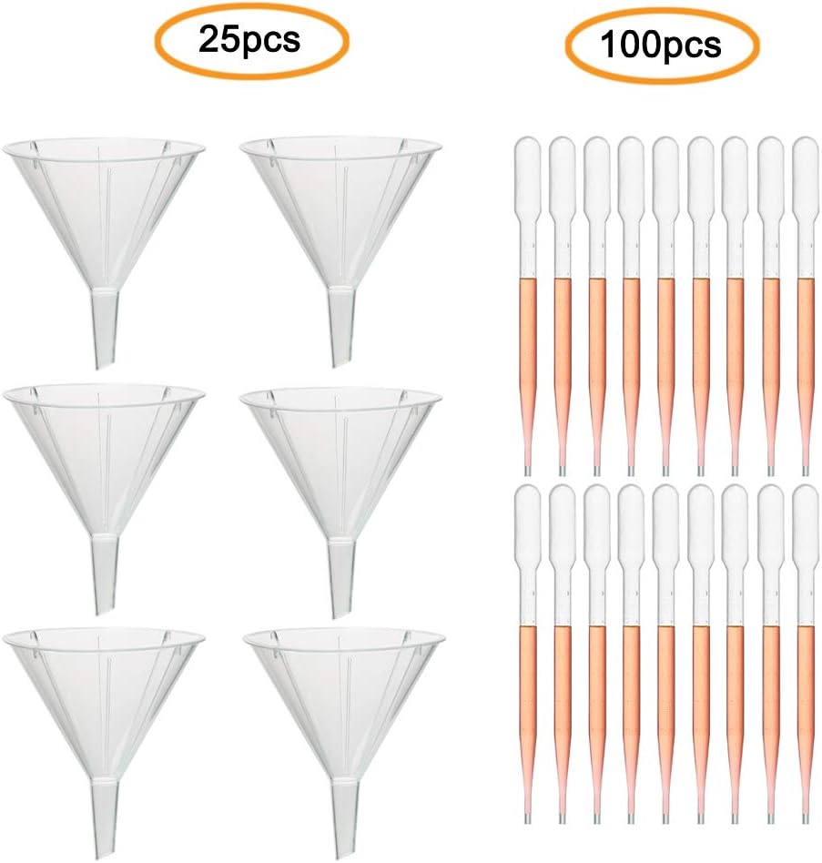 Including 25pcs of disposable plastic funnels and 100pcs of Pasteur pipette