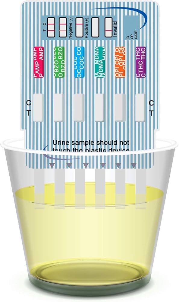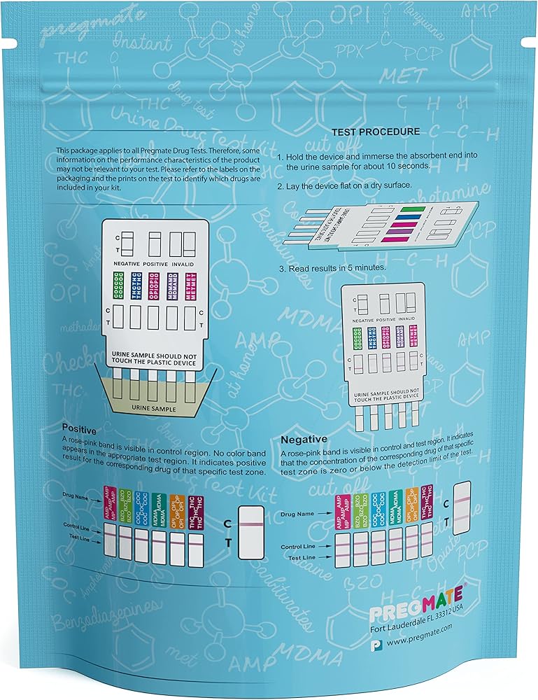 • اختبار لستة أدوية مختلفة: الماريجوانا (THC)، الكوكايين (COC)، الأفيون (OPI)، الأمفيتامين (AMP)، البنزوديازيبينات (BZO)، ميثيلين ديوكسي ميثامفيتامين (MDMA).
