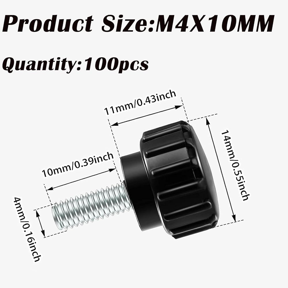made of quality carbon steel: our round head thread knurled clamping knobs,m4x10mm thumb screws are made of quality carbon steel, with good hardness, strength, corrosion resistance and wear resistance; It is a fastening accessory that can be applied for a long time and could be reusable for most different purposes