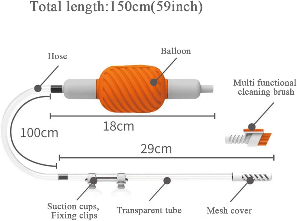 Double Suction Cup Design: The double suction cups are easy to fix the fish tank, freeing hands to change water effortlessly. They can be adsorbed on the fish tank wall for a long time without the need for handheld use.
