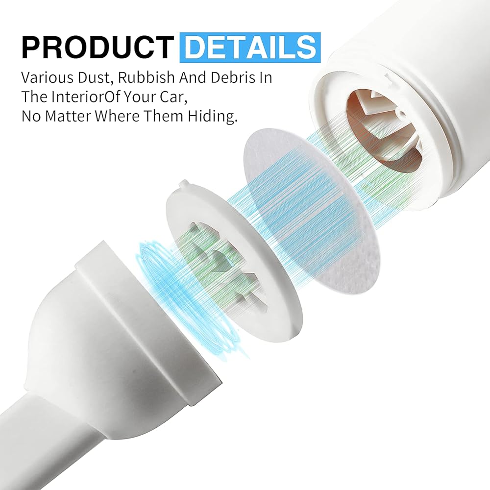 【ملحقات كاملة】 المكنسة الكهربائية المحمولة مع نوع واحد مختلف من الملحقات، يمكن لهذه المكنسة الكهربائية المحمولة أن توفر خيارات تنظيف رائعة لتلبية الاحتياجات المختلفة. تتضمن فوهة شقوق للفجوات الضيقة، وأداة فرشاة للسجاد. هذه الأدوات ستبقي الجزء الداخلي لسيارتك لطيفًا ومرتبًا.