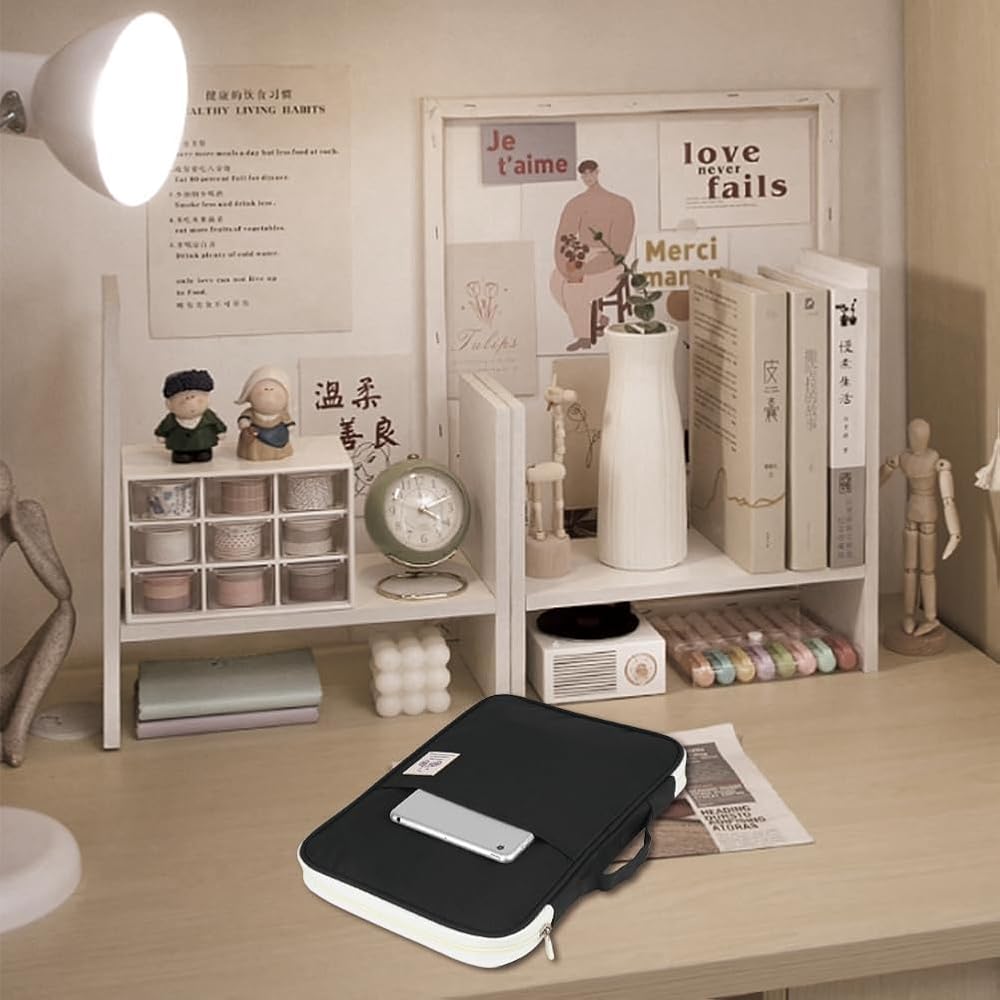Functional Portfolio Organizer Bag: Versatile configurations with the ability to hold alot without bulk or feeling overloaded. Fit for 13'' laptop, tablets, Kindle, planner, journal, papers, notebooks, pens/pencils, sticky notes,highlighters and many more.