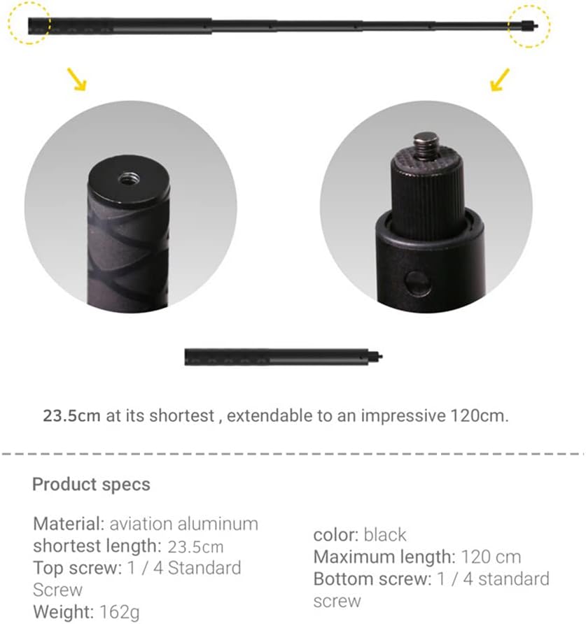 Camnoon عصا سيلفي غير مرئية برغي 1/4 بوصة 23.5 سم - 120 سم طول قابل للتعديل لكاميرا Insta360 ONE X/ONE/EVO/ONE R/ONE X2