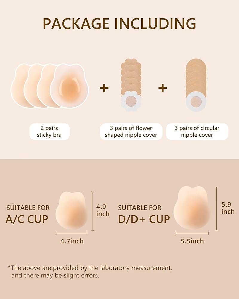 مادة السيليكون النقية: مصنوعة من السيليكون عالي الجودة والصديق للبشرة، حمالة الصدر بدون حمالات لدينا تتمتع بقوة لصق ممتازة. تهدف أغطية الحلمات لدينا، خفيفة الوزن ورفيعة، إلى البقاء في مكانها بينما تمتزج بسلاسة مع صورتك الظلية. لديهم قوة لاصقة ممتازة وليست عرضة للانزلاق