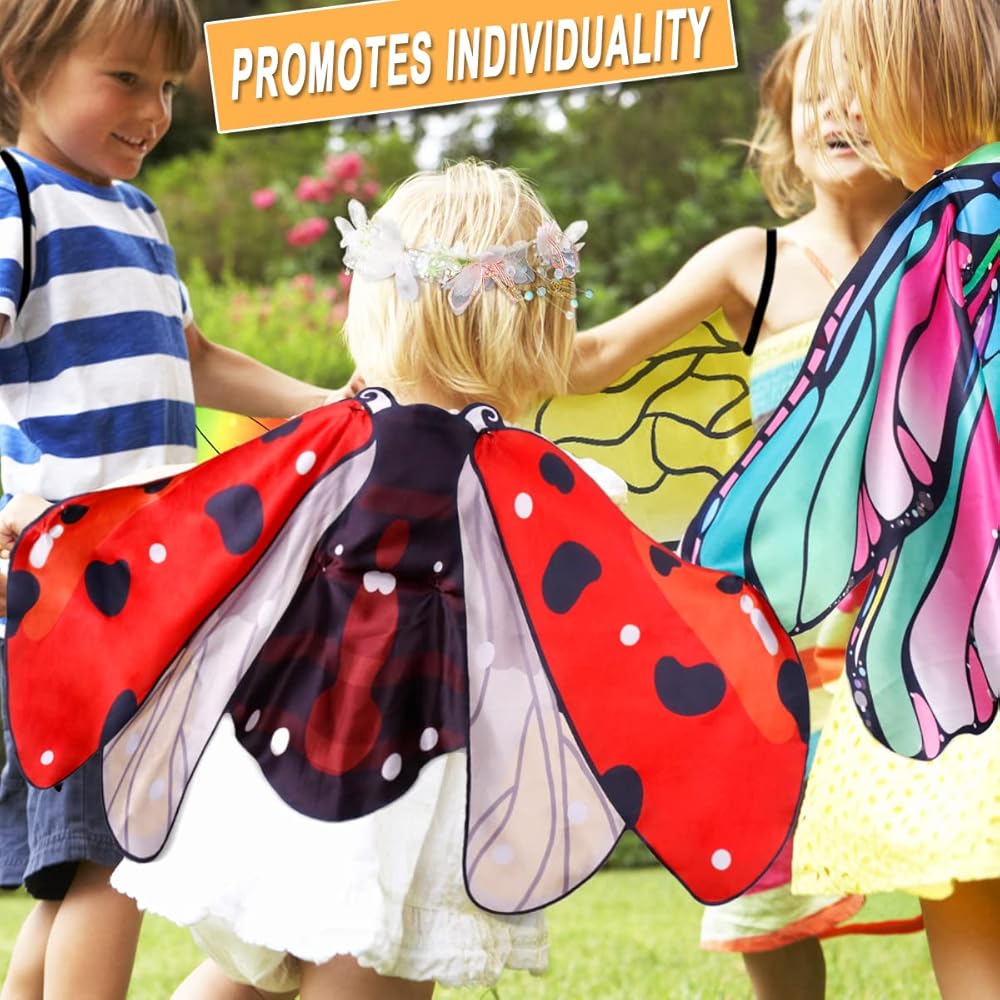 Let your child out of the TV room and come to the real world! These vivid and colorful fairy wings are perfect for dress-up, costume, dancing, pretend play, or just for playtime.
