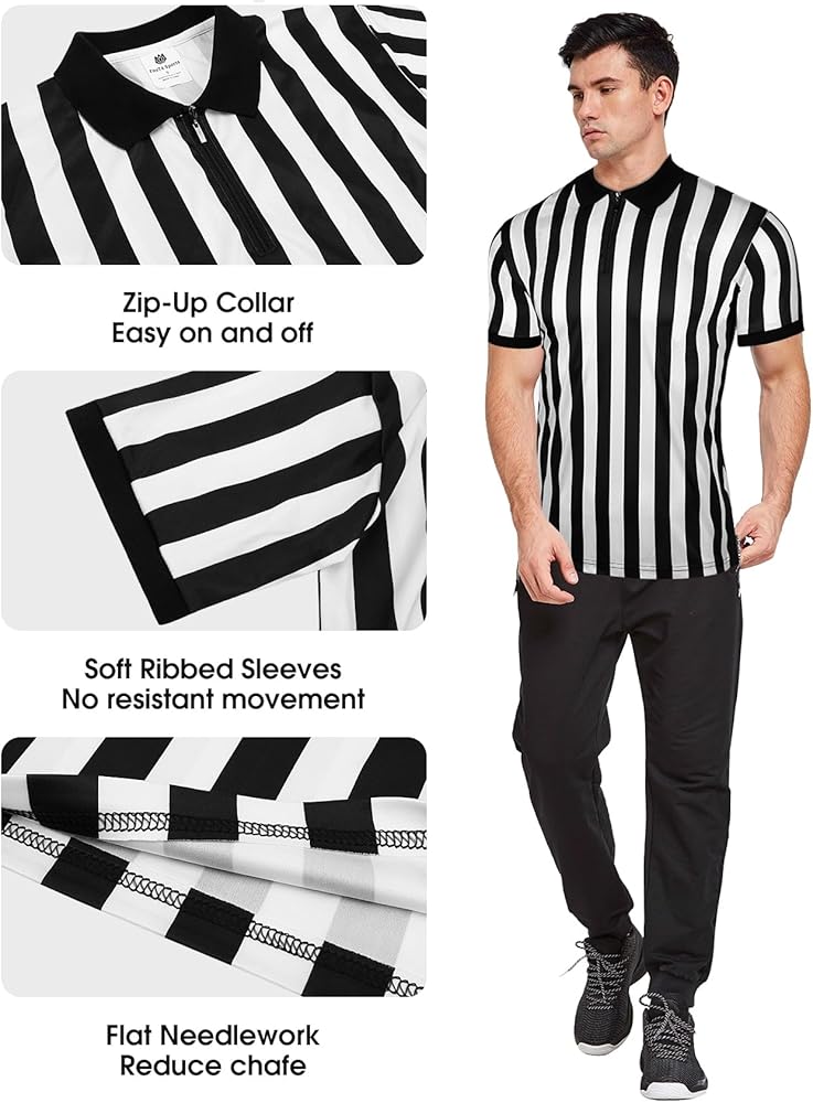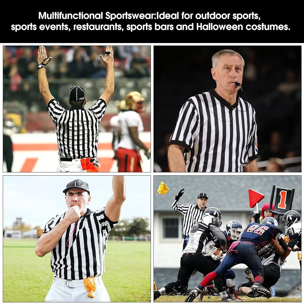 ملابس رياضية متعددة الوظائف: مجموعة قمصان الحكم هذه مناسبة لكرة القدم وكرة السلة وكرة القدم والكرة الطائرة وغيرها من الرياضات الخارجية، ولكنها أيضًا مثالية للمناسبات الرياضية والمطاعم والحانات الرياضية وأزياء الهالوين وحتى الأزياء التنكرية.