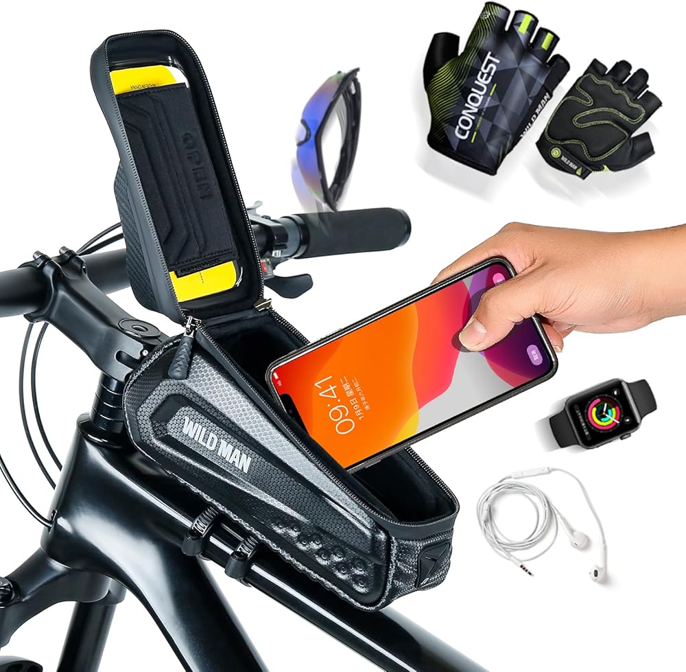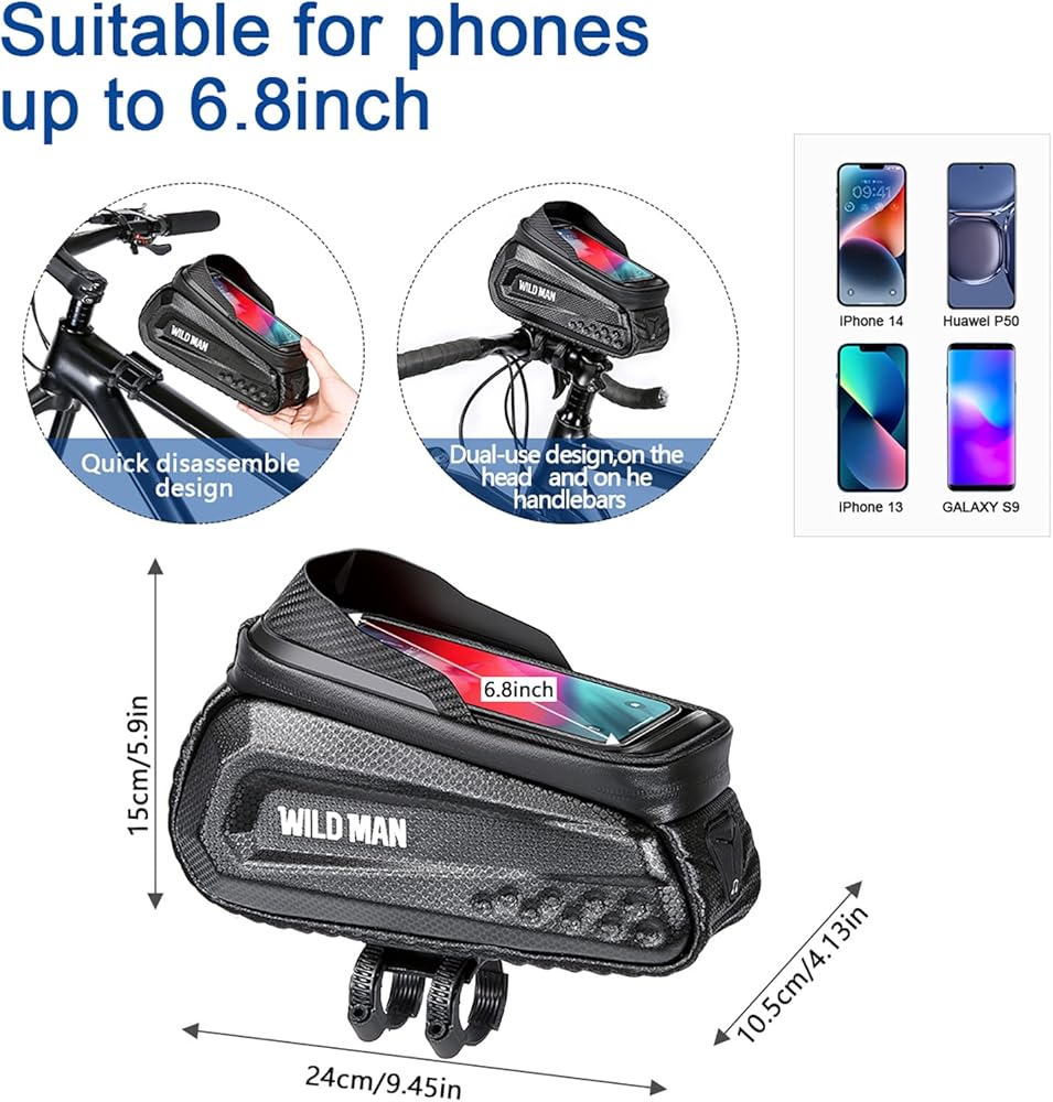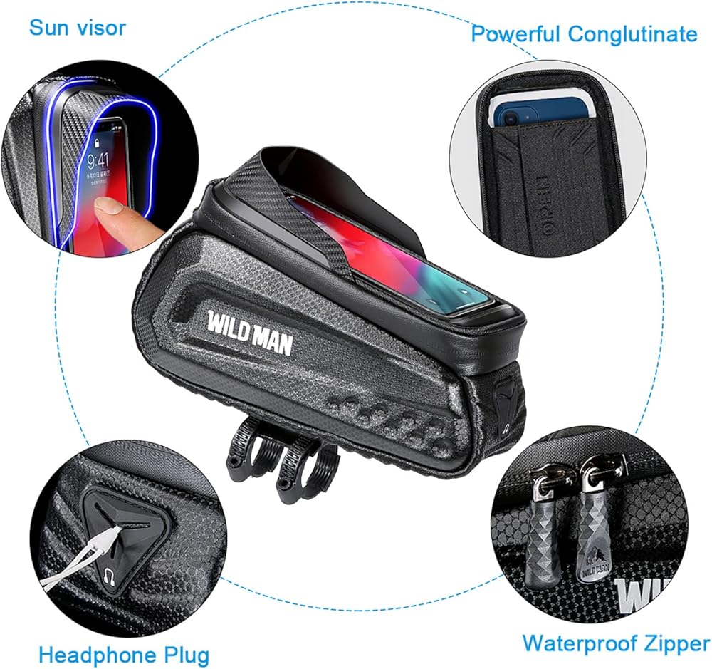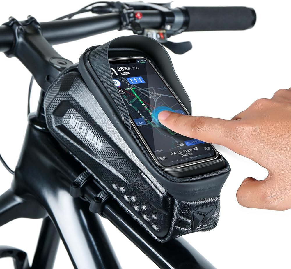 1. شاشة تعمل باللمس لحقيبة هاتف الدراجة: شاشة اللمس لحقيبة حامل الهاتف المحمول للدراجة مصنوعة من طبقة TPU 0.25 مم مع حساسية ووضوح عاليين، نظام تحديد المواقع العالمي (GPS) خالي من الإجهاد أثناء الركوب، والرد على الهاتف، وتشغيل هاتفك.
