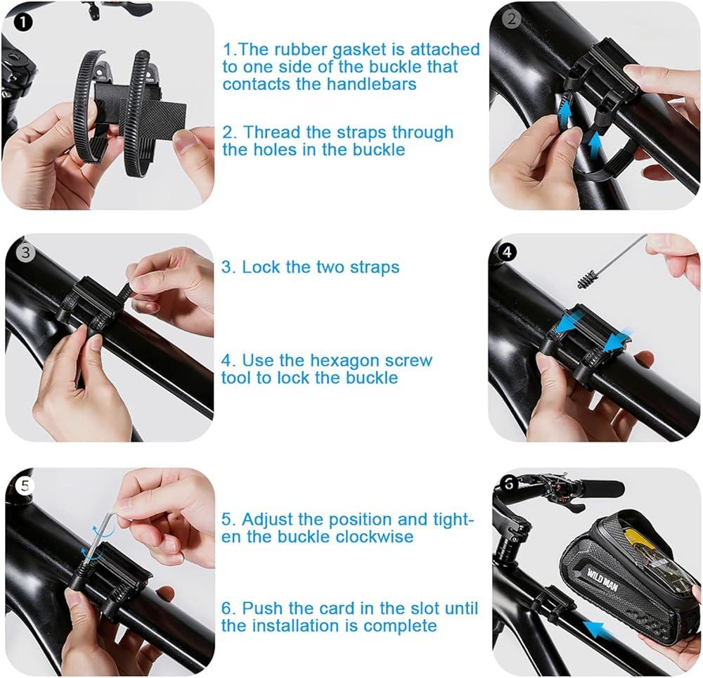5. تصميم إنساني: تحتوي حقيبة الدراجة على فتحة مخفية لسماعة الأذن، وتتميز بمرونة الترفيه بالموسيقى وكذلك الاتصال بالهاتف أثناء ركوب الدراجة. غطاء واقي الشمس الموجود في الجزء العلوي والذي يمكن رؤيته بوضوح من خلال شاشة الهاتف وهو رائع للأيام المشمسة. قم بتثبيت المشبك بمسامير واثبت على الدراجة، إذا كنت بحاجة إلى إزالة الحقيبة، يمكنك إزالتها بنقرة واحدة فقط