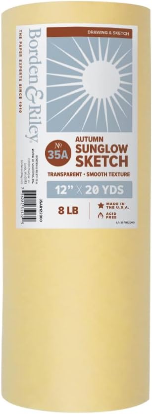 Borden & Riley #35A Sun-Glo Thumbnail Sketch Papers, 12" x 20 Yards Per Roll, Autumn, 1 Roll Each is ideal sketch paper for engineers, architects, and illustrators. Can be used with pens, pencils, or markers. Fortified to withstand considerable handling, transparent with 4 sheet overlays. Made in the USA.