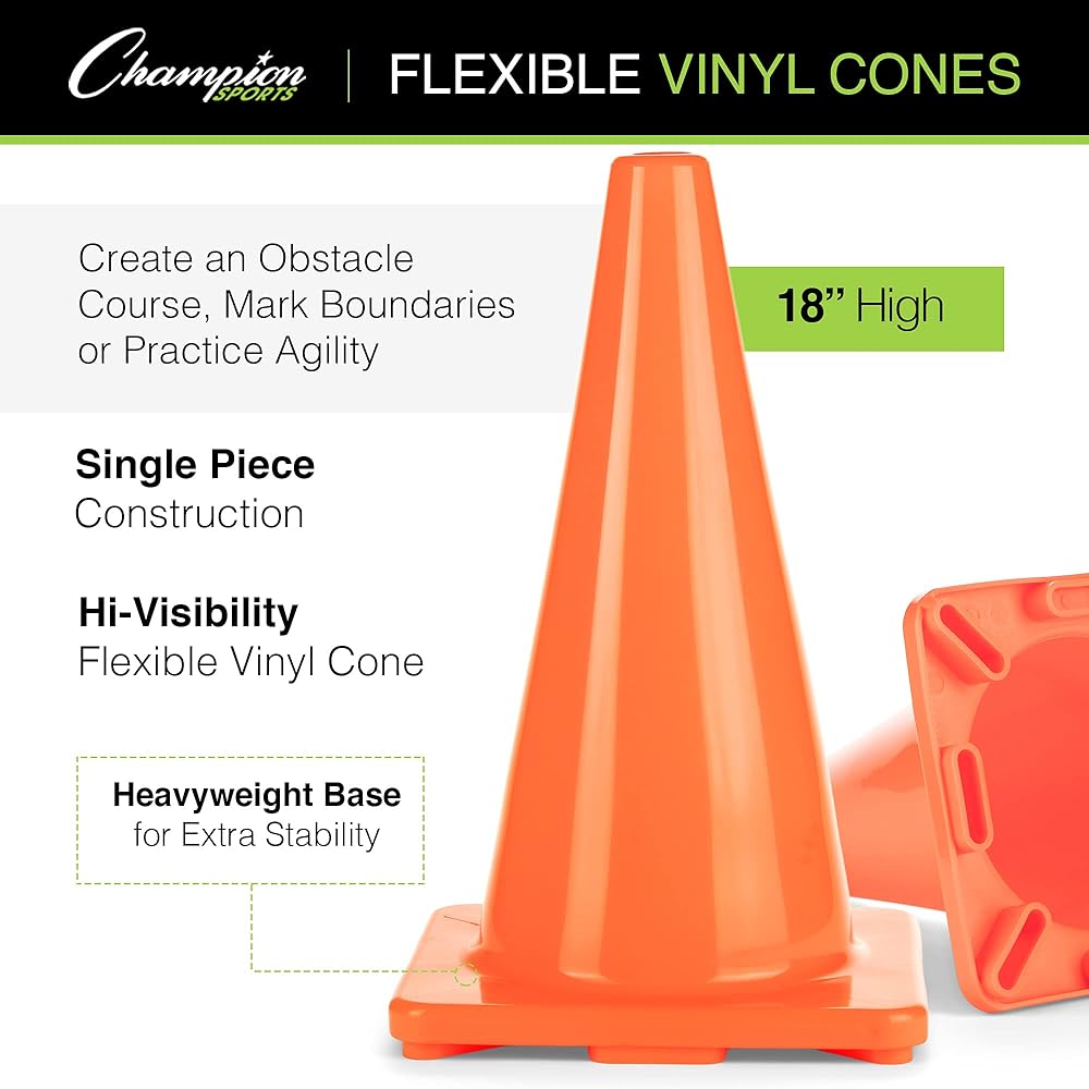 • High visibility 18" flexible vinyl cone for athletics and social distancing measures