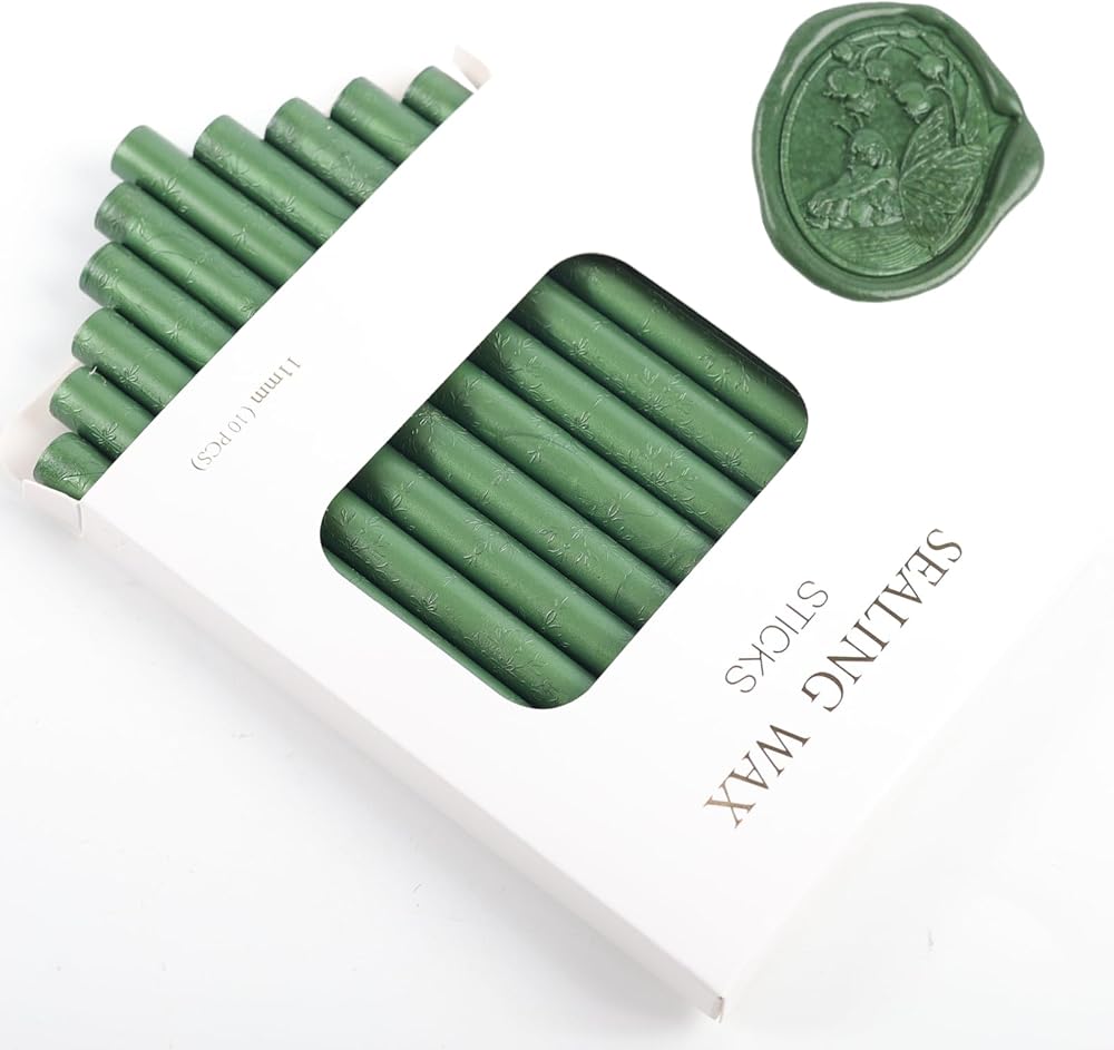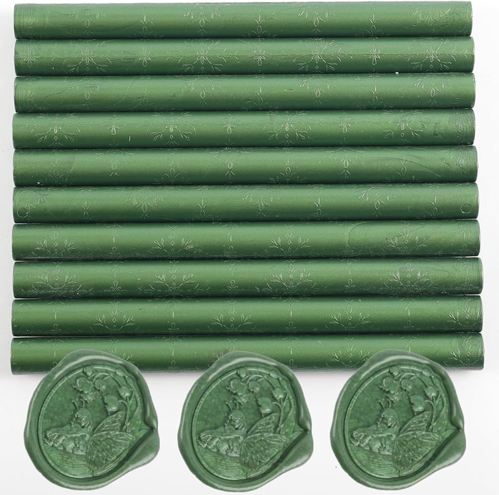 Sealing wax sticks Suitable for decorating and personalize weddings & party invitations, greeting cards, letter-sealing, bottle & gift packages-sealing, letters. Specification Size: 0.43 inch in diameter, 5.3 inch in length. Package includes: 10pcs pearl white wax seal sticks. No flame & Smokeless & non toxic Traditional sealing wax requires flame or a melting spoon, this sealing wax stick could melt without flame, thus you don't need to worry about soot. Sealing wax sticks can using glue gun sealing wax, a glue gun makes it faster and easier to apply than traditional sealing wax with wick. How to use: 1. Insert the wax stick into the glue gun to heat up. 2. Once the glue gun is ready, release the desired amount of wax onto the your invitations, cards, envelopes or letters. 3. Place your stamp on the melted wax and remove the stamp after the wax has completely cooled down. Use it with a low-temp large standard 0.43" glue gun. Sealing wax sticks suitable for making wedding invitations, maps, retro letters, manuscripts, envelopes, parcels, cards, crafts, gifts sealing, wine sealing or cosmetics packaging, party invitations and other craft projects. Warm Noted: If you find the stamp stuck to the wax, let it rest until the stamp has cooled; Then you should be able to easily release your stamp from the wax. We highly recommend using a low-temperature full-size glue gun or a dual-temperature full-size glue gun, so that the wax melted at a low temperature won't be too thin. As wax melted at high temperature could be thin and runny.