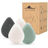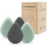 اسفنجات الكونجاك الطبيعية للوجه من ماي هوم بودي - على شكل دمعة - لتنظيف وتقشير لطيف للوجه - مع الفحم المنشط والصبار، مجموعة مكونة من 4 قطع