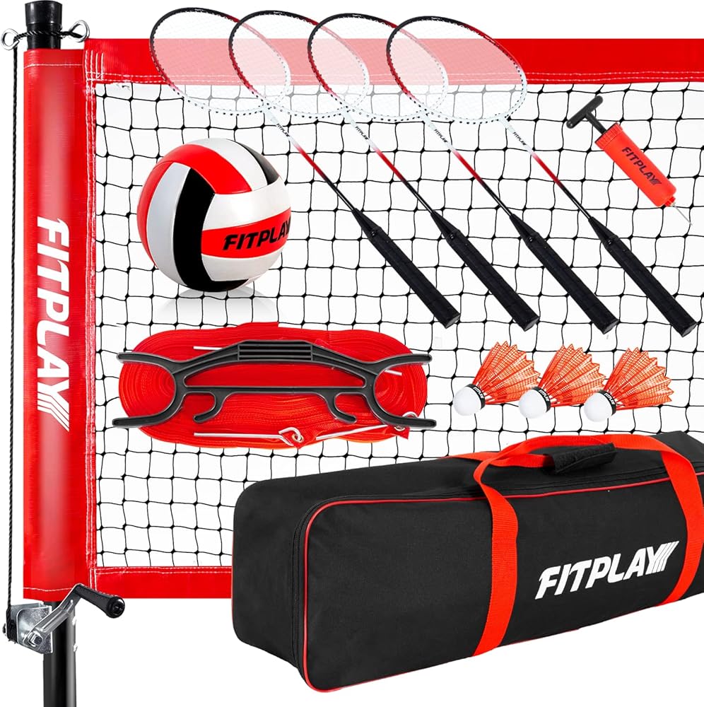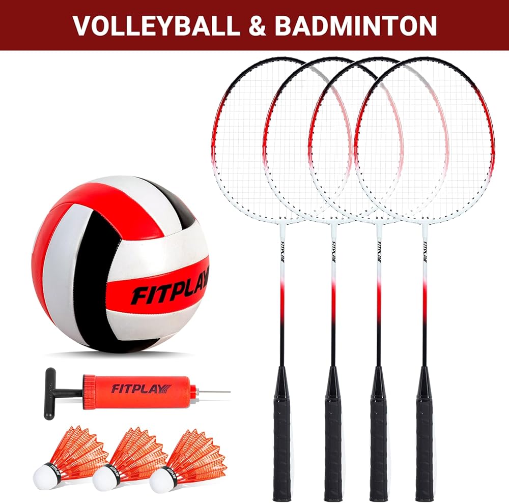 مجموعة كرة الطائرة وكرة الريشة المحمولة في الهواء الطلق من weepalm، مع مضارب كرة الريشة المصنوعة من الألومنيوم، والكرات، وأعمدة فولاذية قابلة لضبط الارتفاع، ونظام الونش، والكرة الطائرة مع مضخة وحقيبة حمل لشاطئ الفناء الخلفي