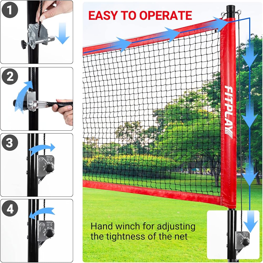 🏐 【نظام ونش أكثر راحة】تتميز بنظام ونش مضاد للترهل، يمكن لشبكة الكرة الطائرة الخارجية ضبط إحكامها ومنع الترهل. هناك خطوط توجيه وأوتاد أرضية لجعل الإطار أكثر استقرارًا بالنسبة لك لممارسة الإرسال/الضرب/التمرير.